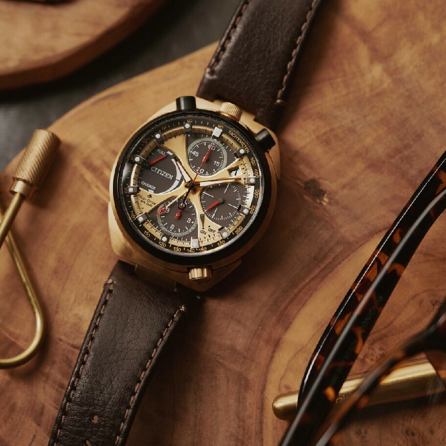 • 這款罕見的計時碼表受到 1973 年原版 Citizen Bullhead 的啟發