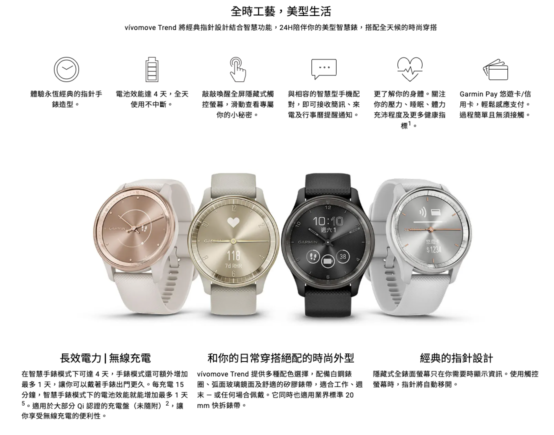 【Garmin】Vívomove Trend 指針智慧腕錶 - 摩卡金 (010-02665-52) 40.4mm 現代鐘錶