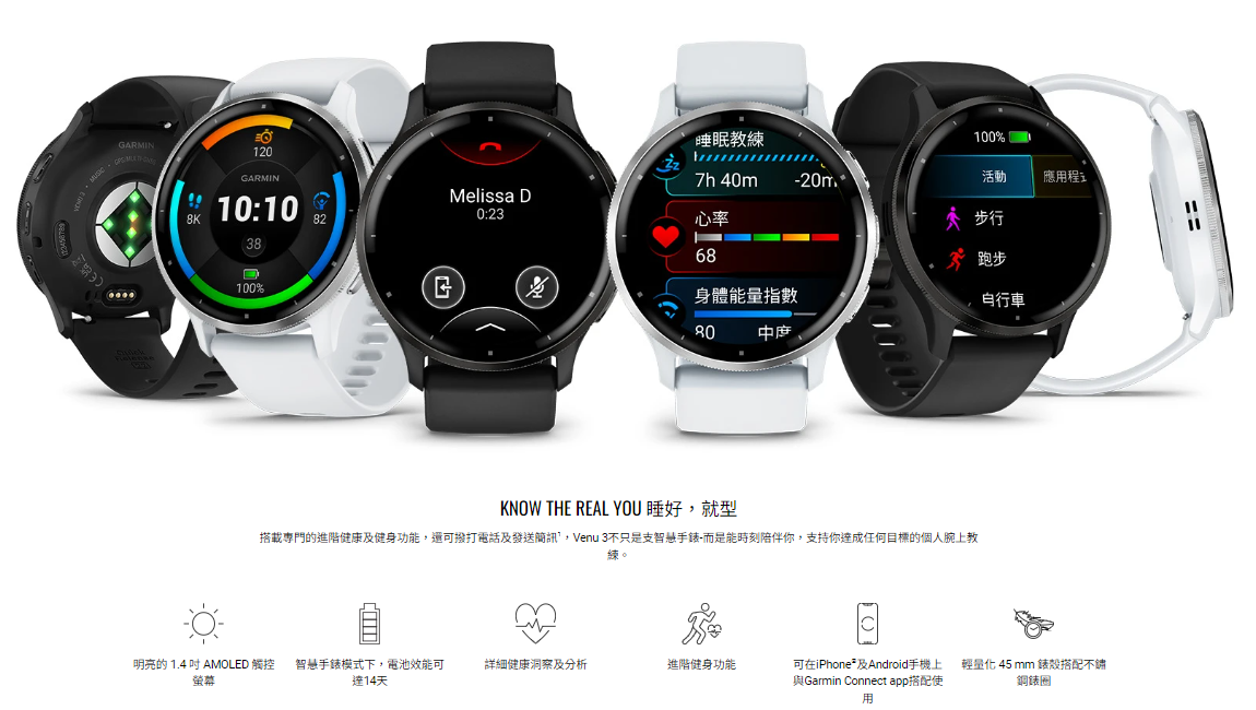 【Garmin】Venu 3 GPS 智慧腕錶 - 活力白 010-02784-20 45mm 現代鐘錶