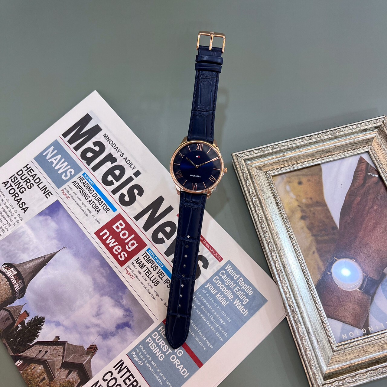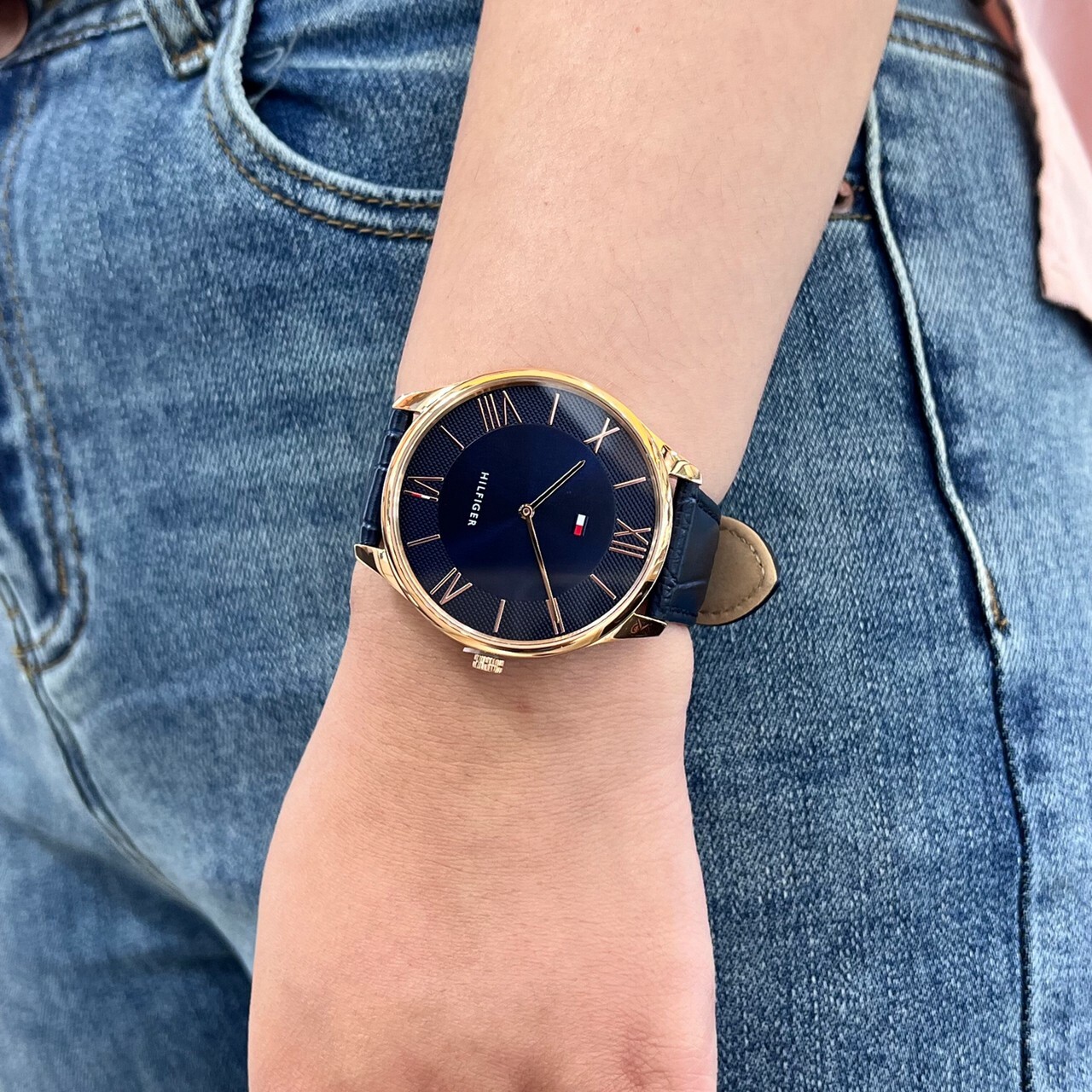 • 寶藍色壓紋牛皮錶帶