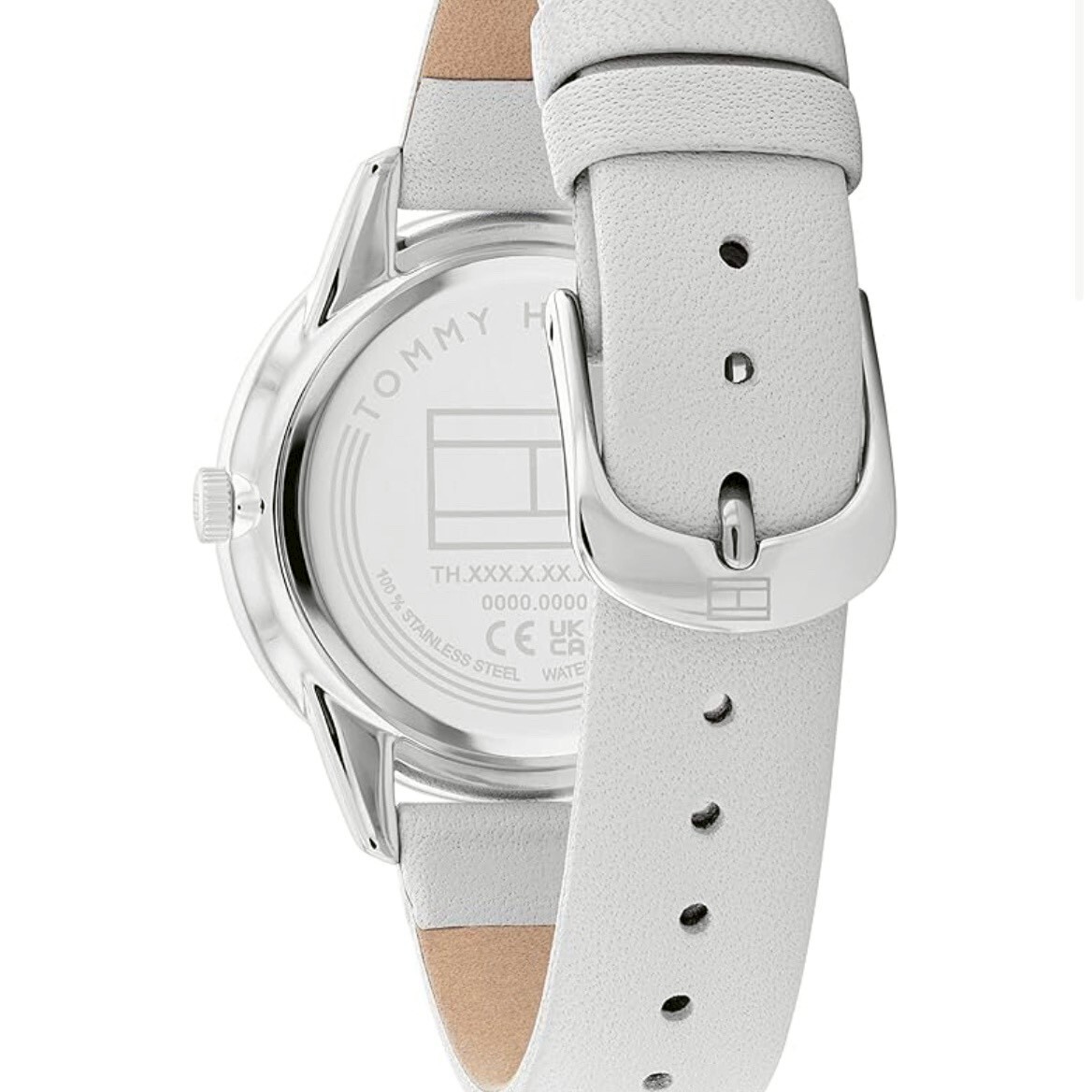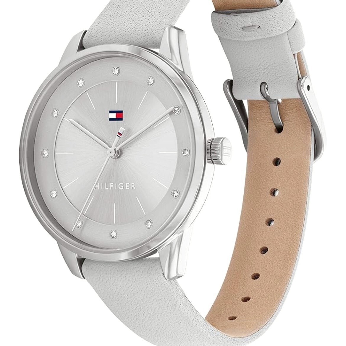 • 銀殼鑽飾銀面皮革腕錶