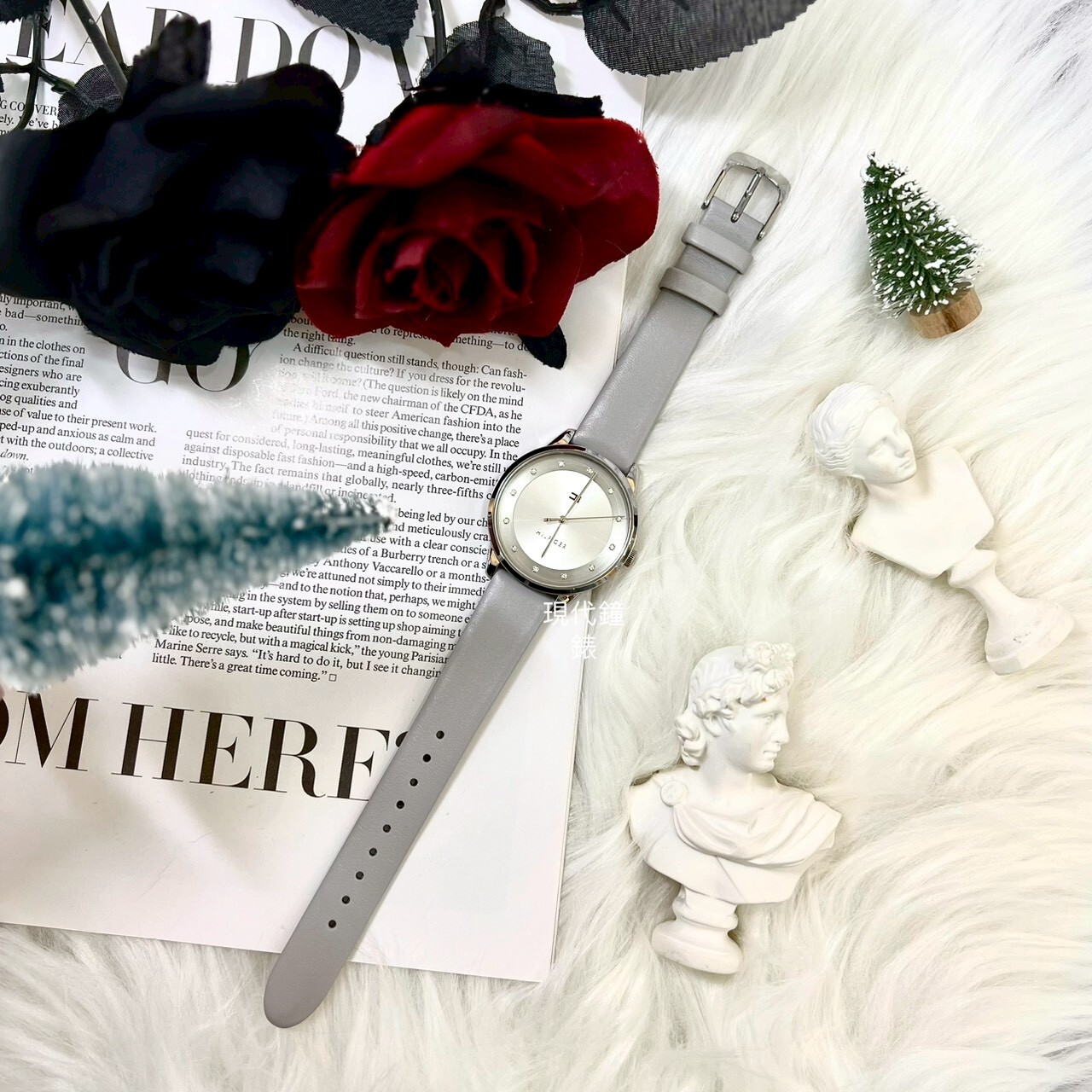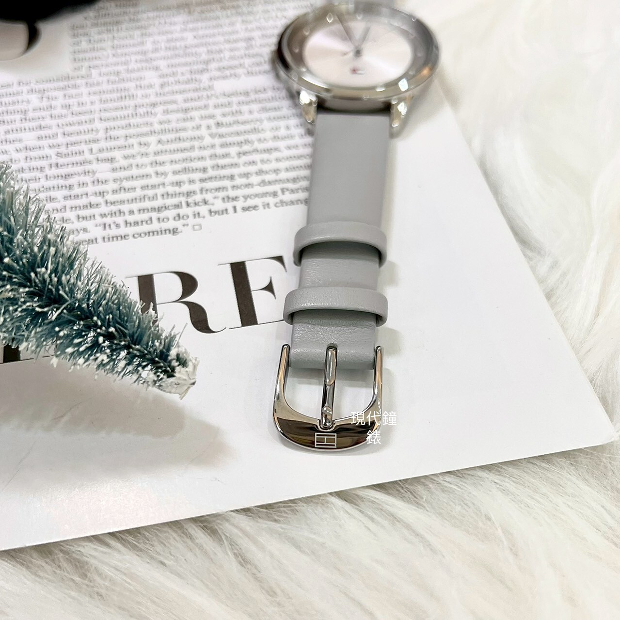 • 灰色皮革女錶