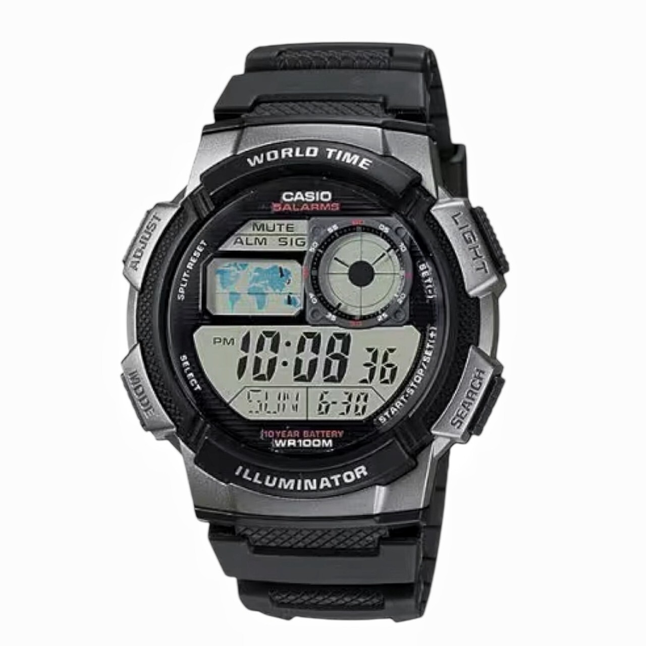 • LED 燈 / 1/100 秒錶 / LC 指針顯示(居住城市時間)