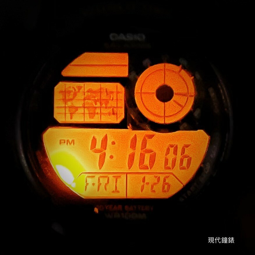 • LED 燈 / 1/100 秒錶 / LC 指針顯示(居住城市時間)