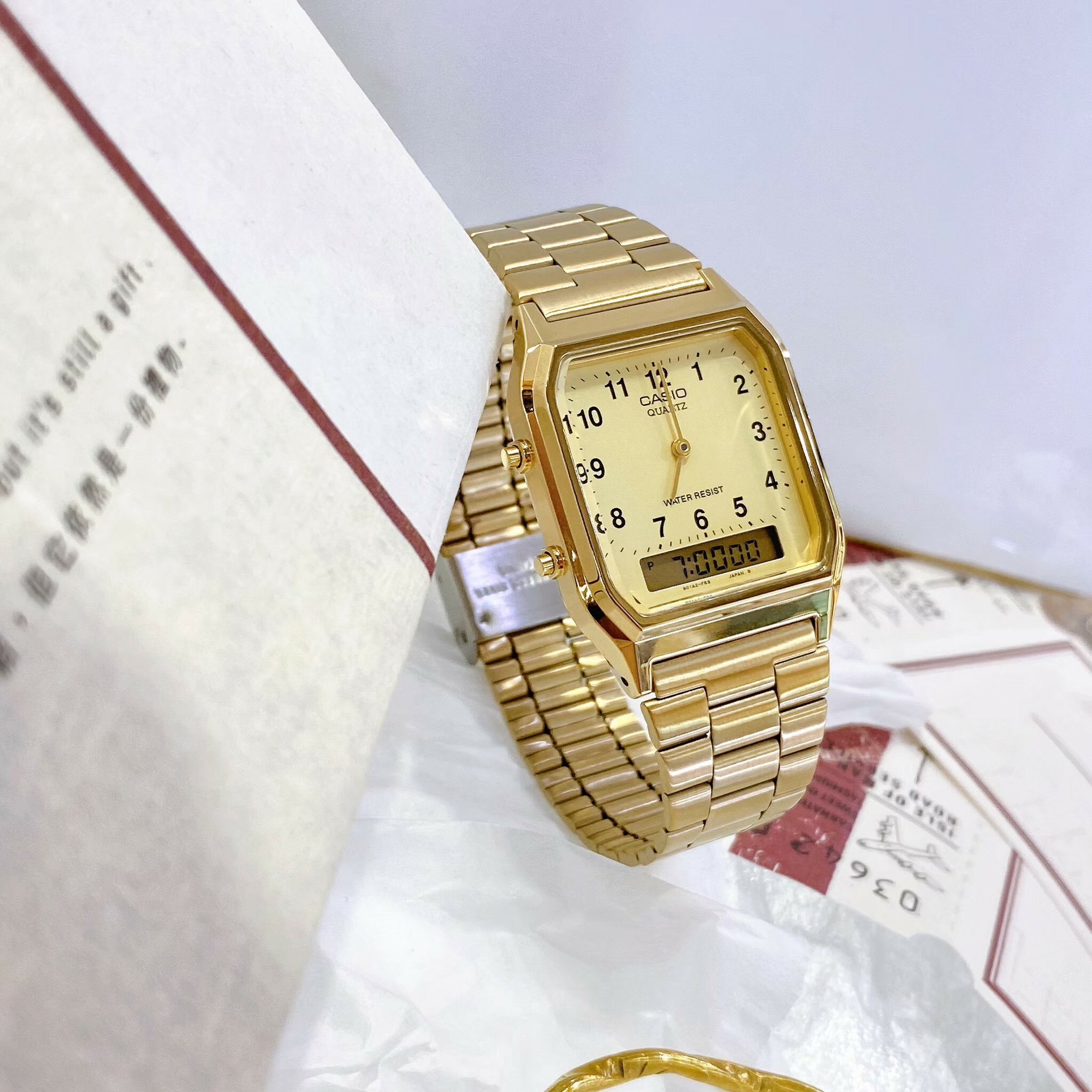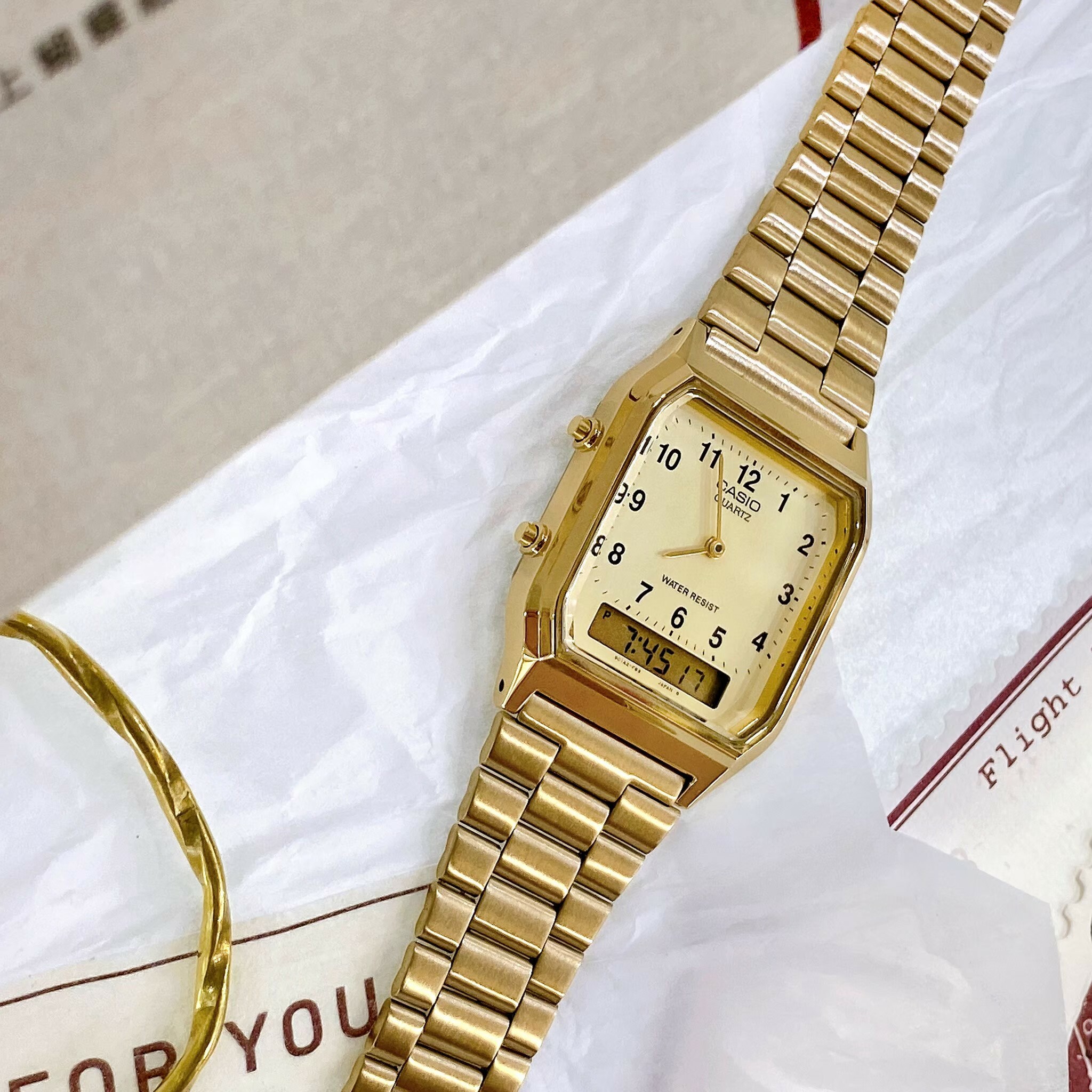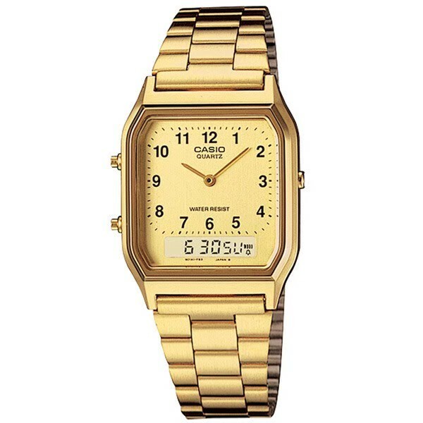 【CASIO 卡西歐】日風數字復古金色雙顯錶 AQ-230GA-9B 現代鐘錶