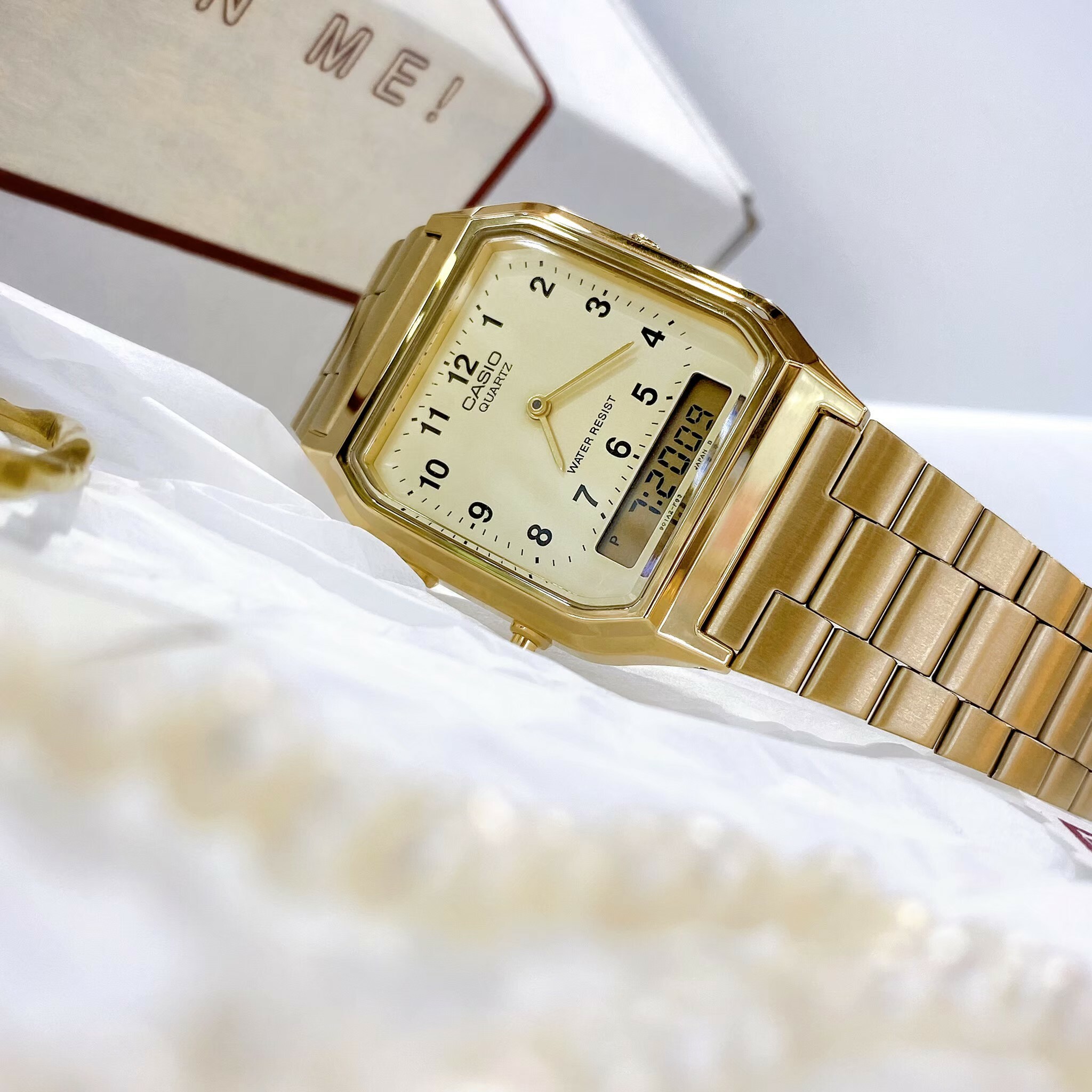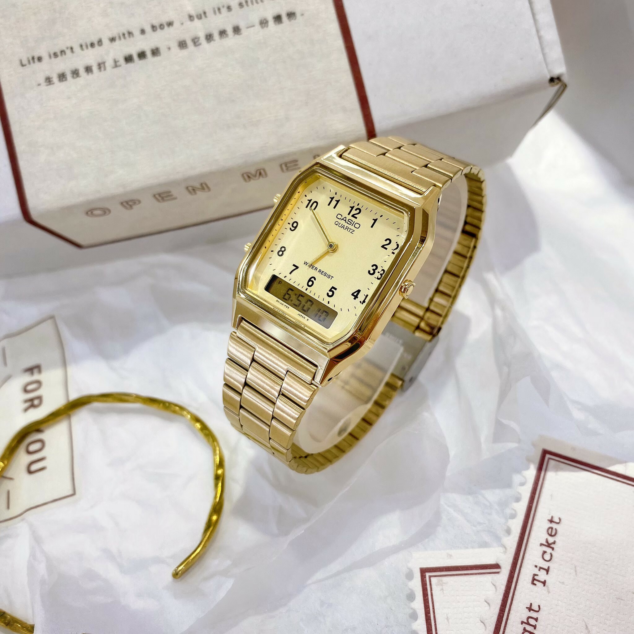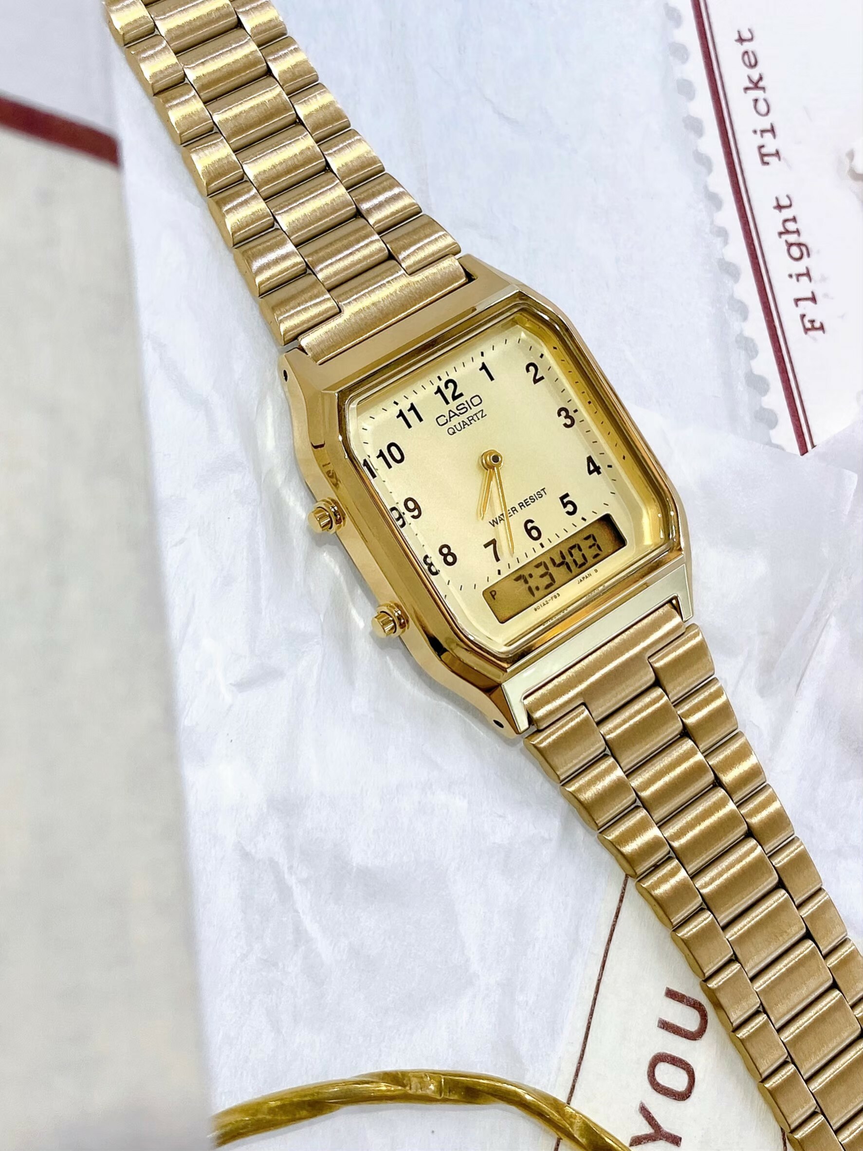 【CASIO 卡西歐】日風數字復古金色雙顯錶 AQ-230GA-9B 現代鐘錶
