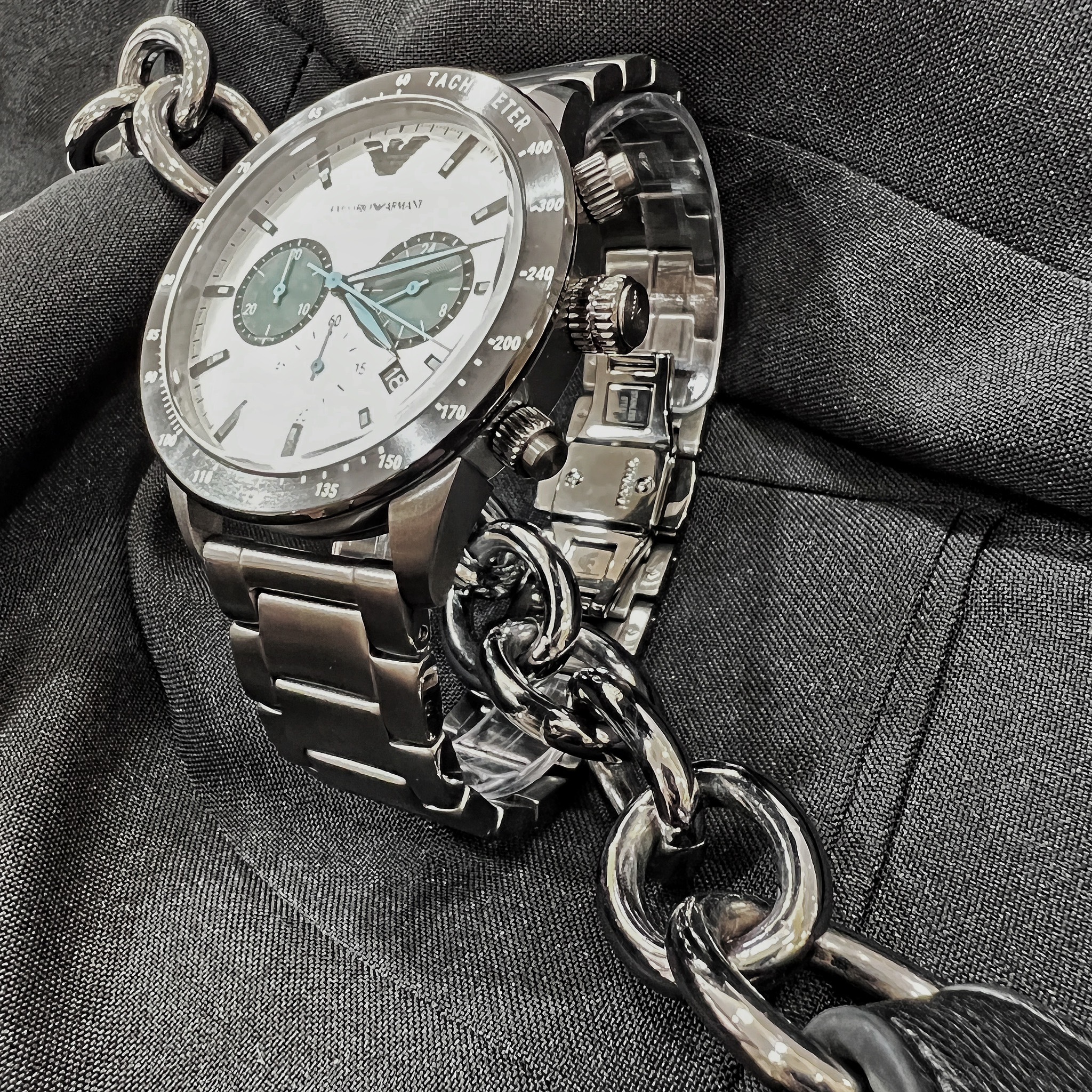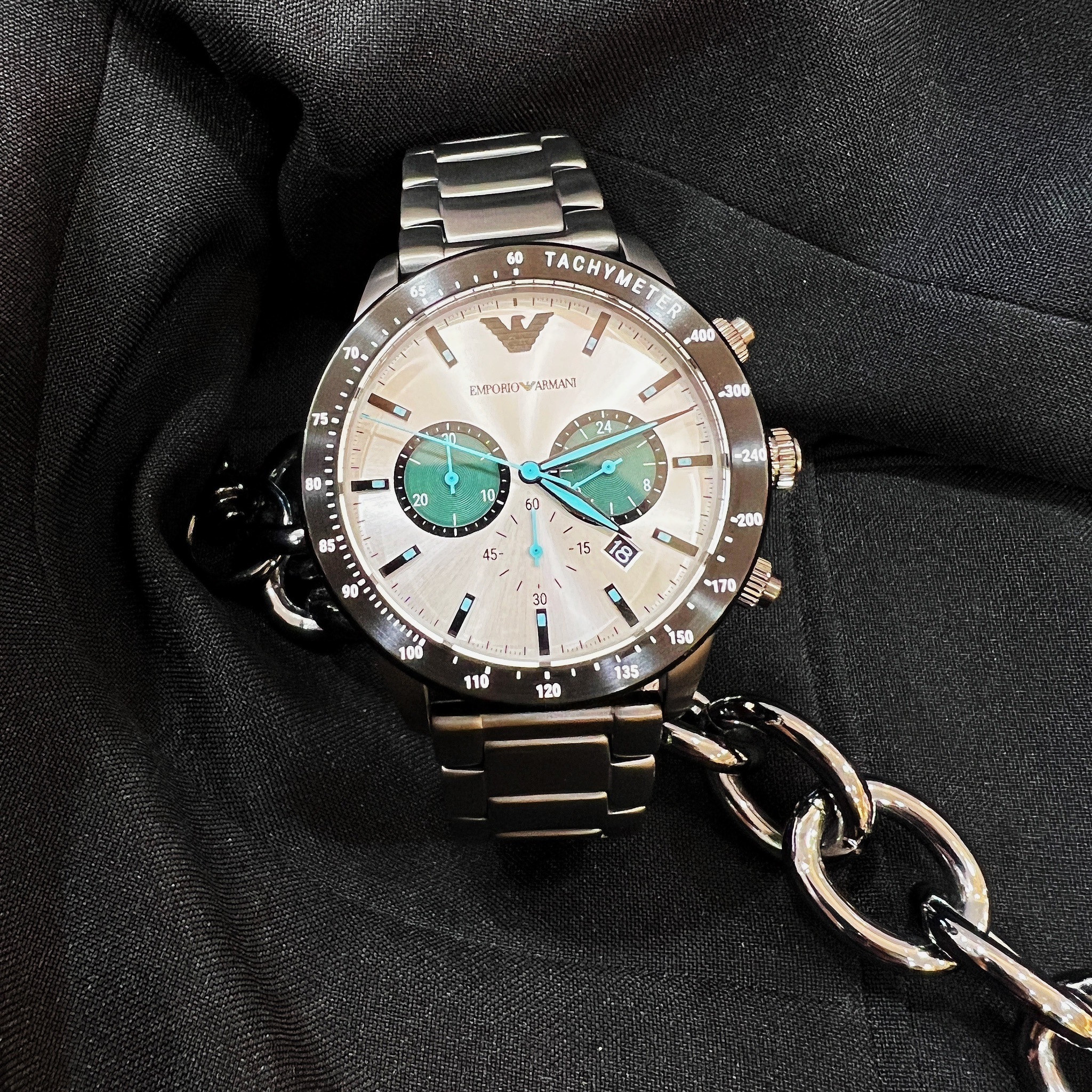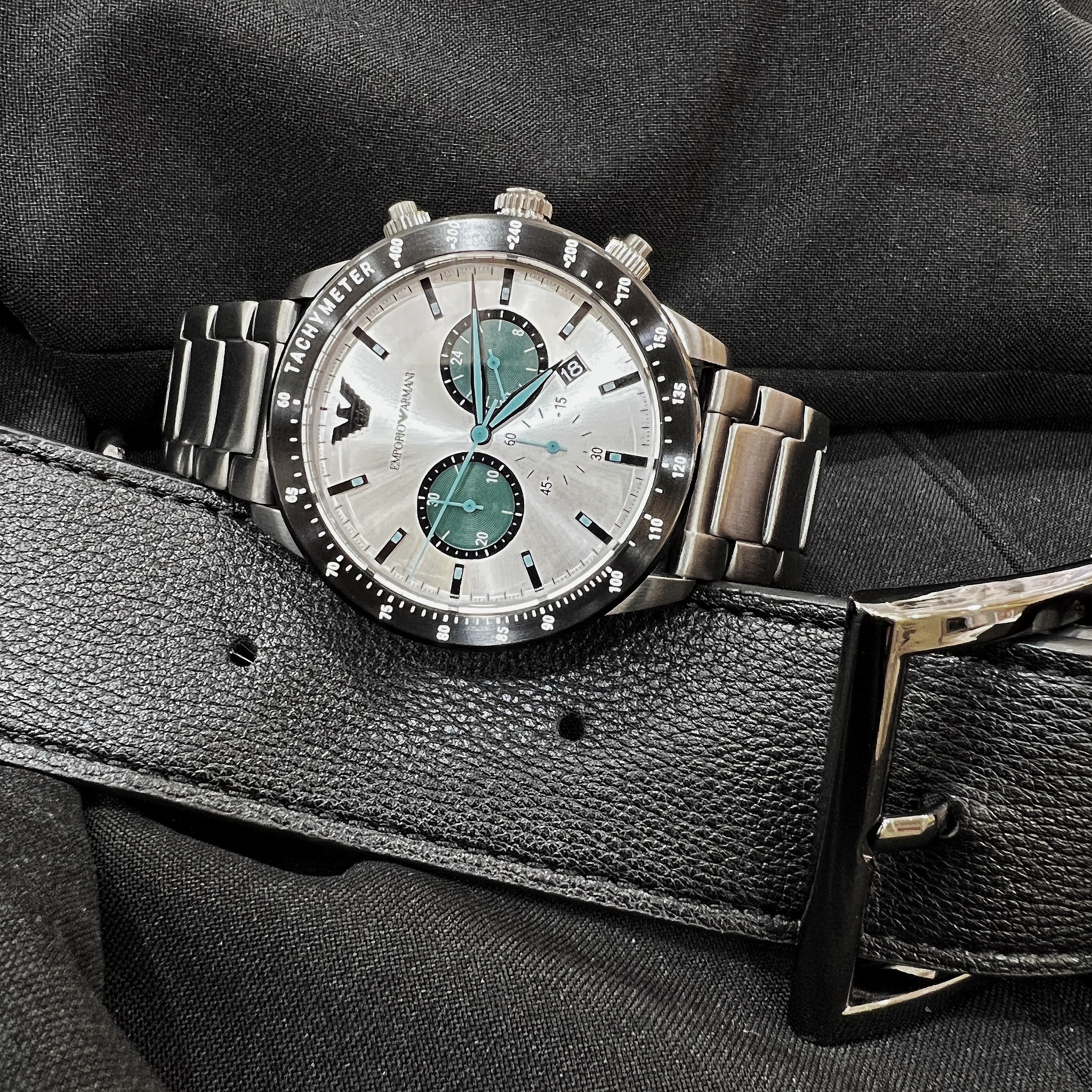 【EMPORIO ARMANI】Mario 紳士三眼計時腕錶 AR11471 43mm 現代鐘錶