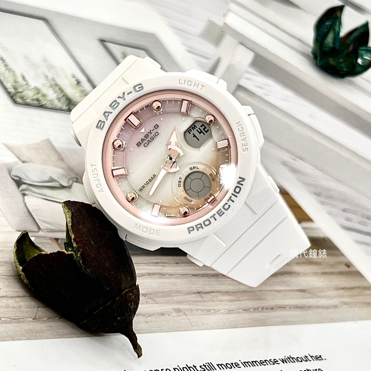 • 時針/分針和周圍時刻標皆以船舵和船錨圖案為靈感