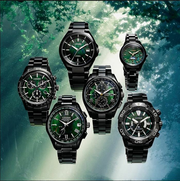 極光之森限定款腕錶透過象徵宇宙的黑色外型,結合代表植物生命力的綠色面盤