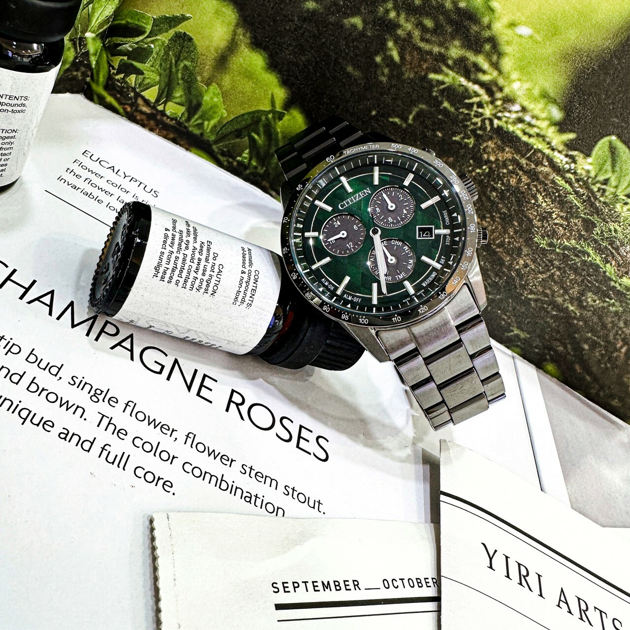 以光線穿越黑暗賦予植物生命的意象,呼應光照驅動機芯運轉的光動能(Eco-Drive)技術