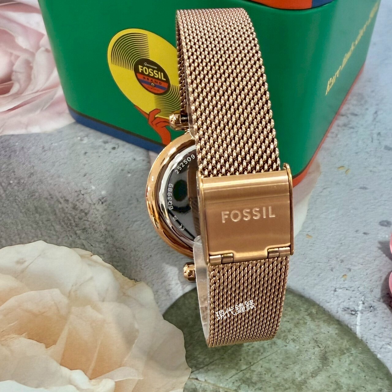 • 內圈鑽/三針式/玫瑰金米蘭帶