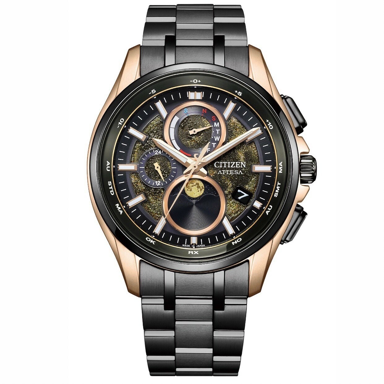 • 萬年曆 /星期與日期顯示/ 月相盈虧顯示/撞擊偵測/ 指針修正