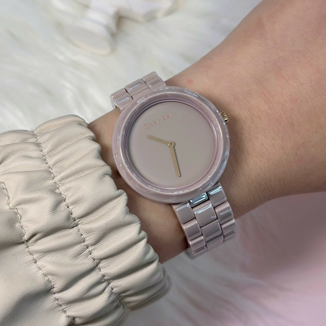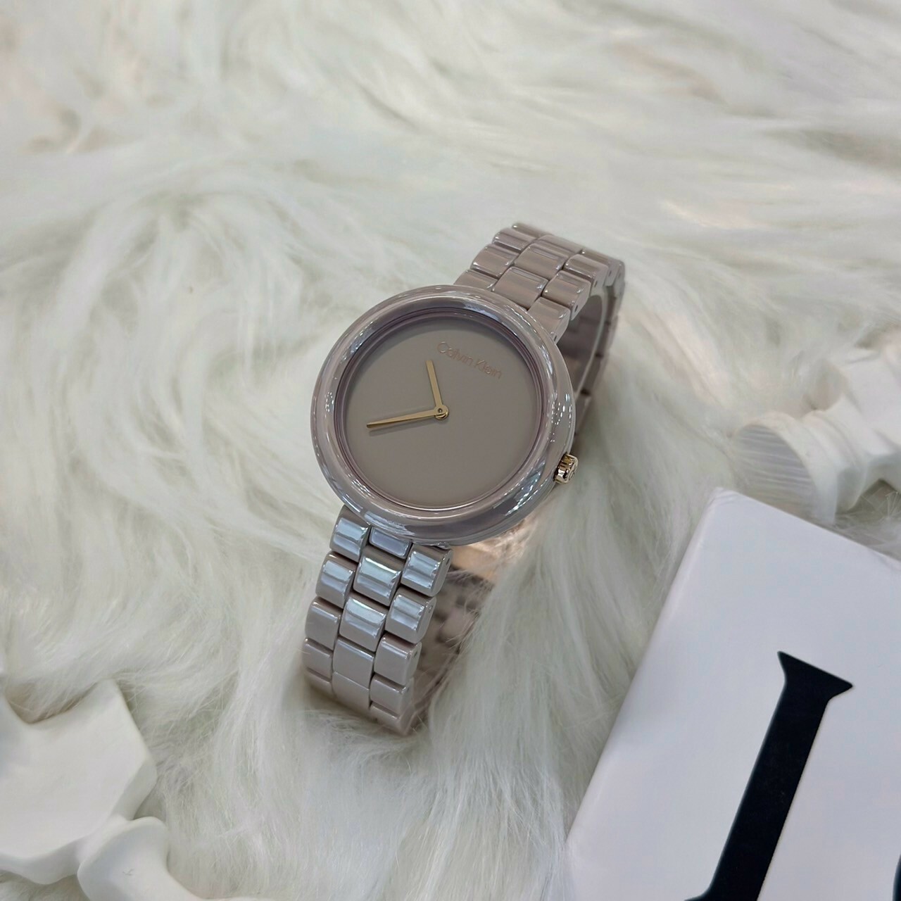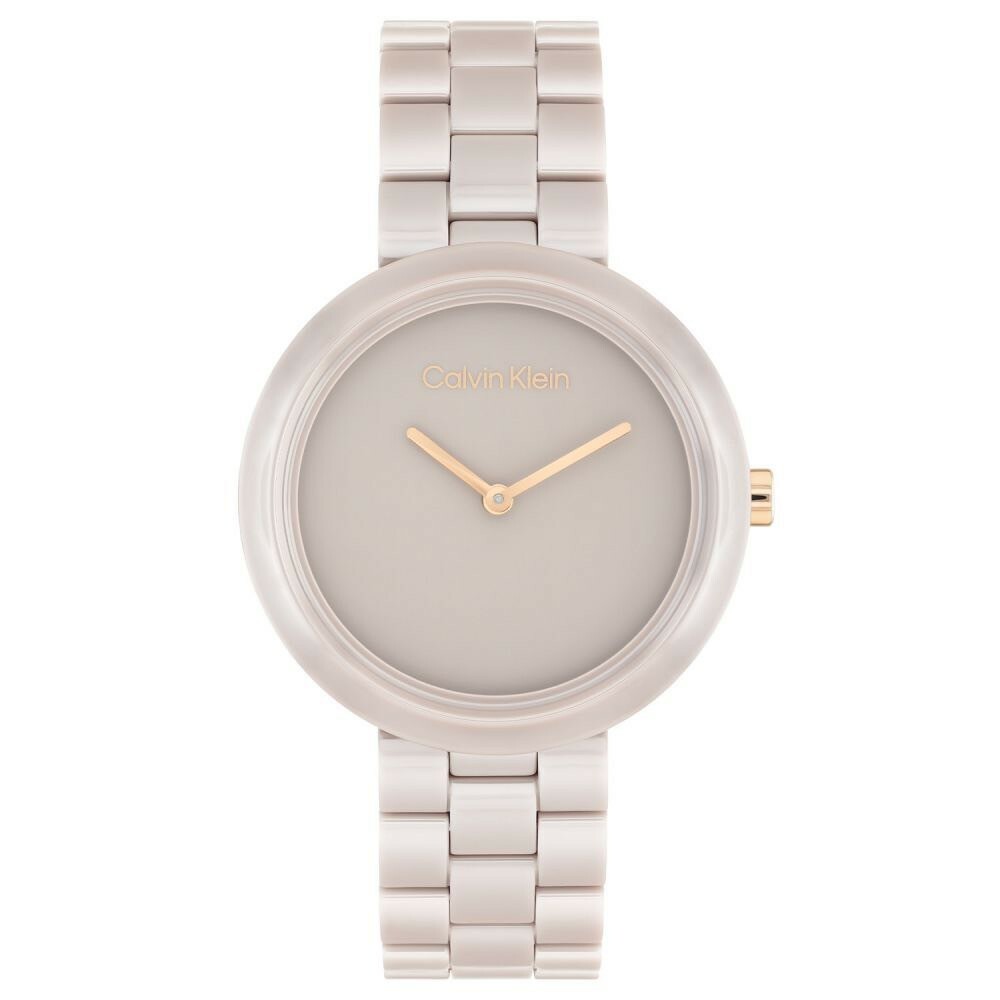【CALVIN KLEIN】簡約時尚奶茶色精緻陶瓷女錶CK25100073 34mm 現代鐘錶