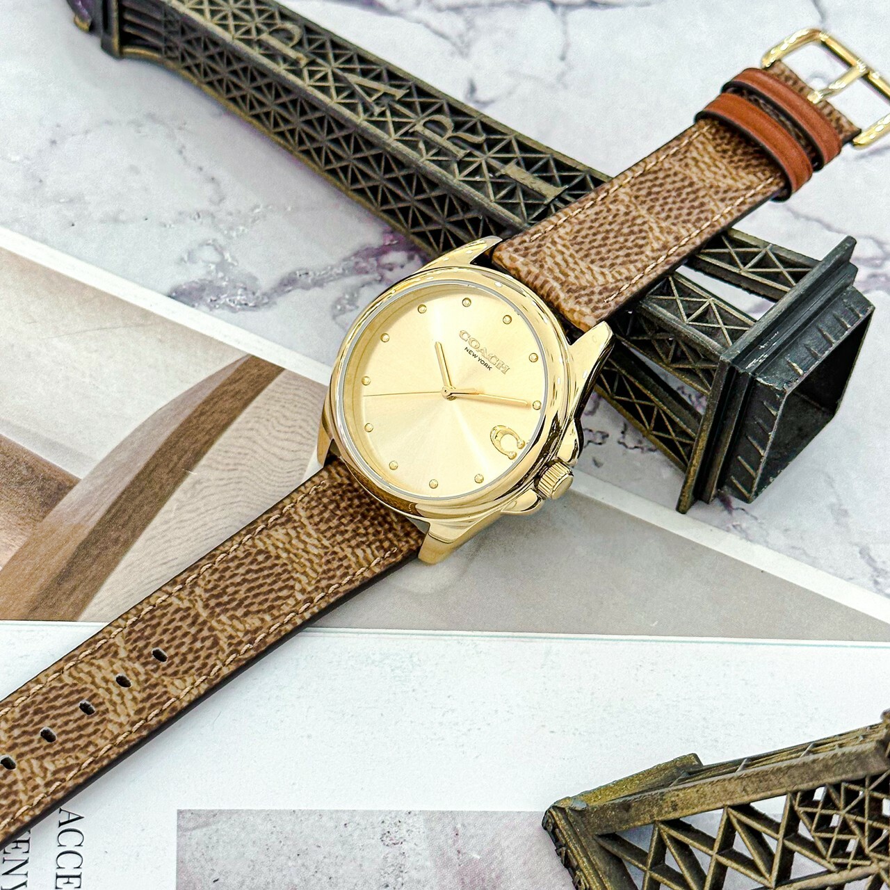 【COACH】Greyson C字皮帶女錶 CO14504111 36mm 現代鐘錶