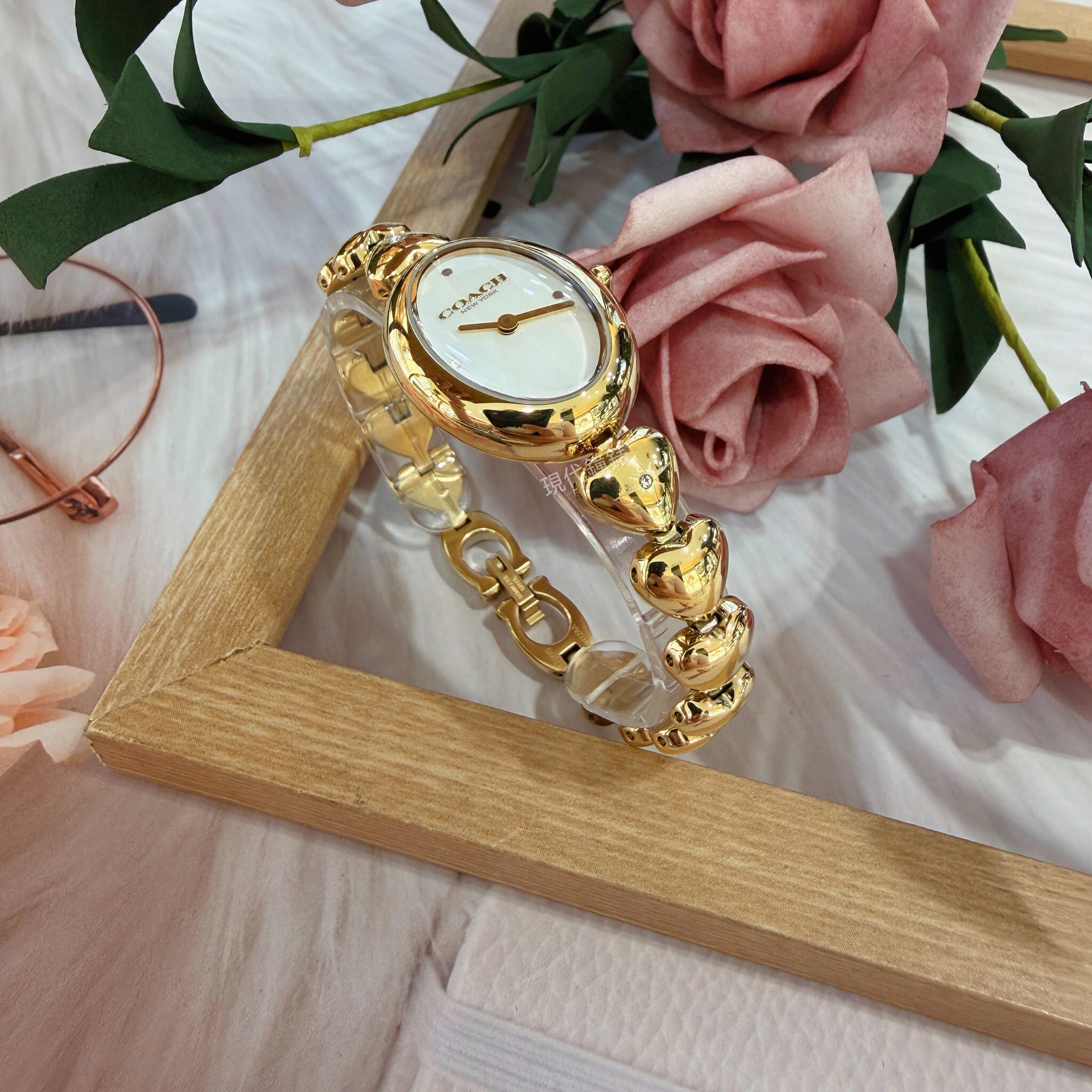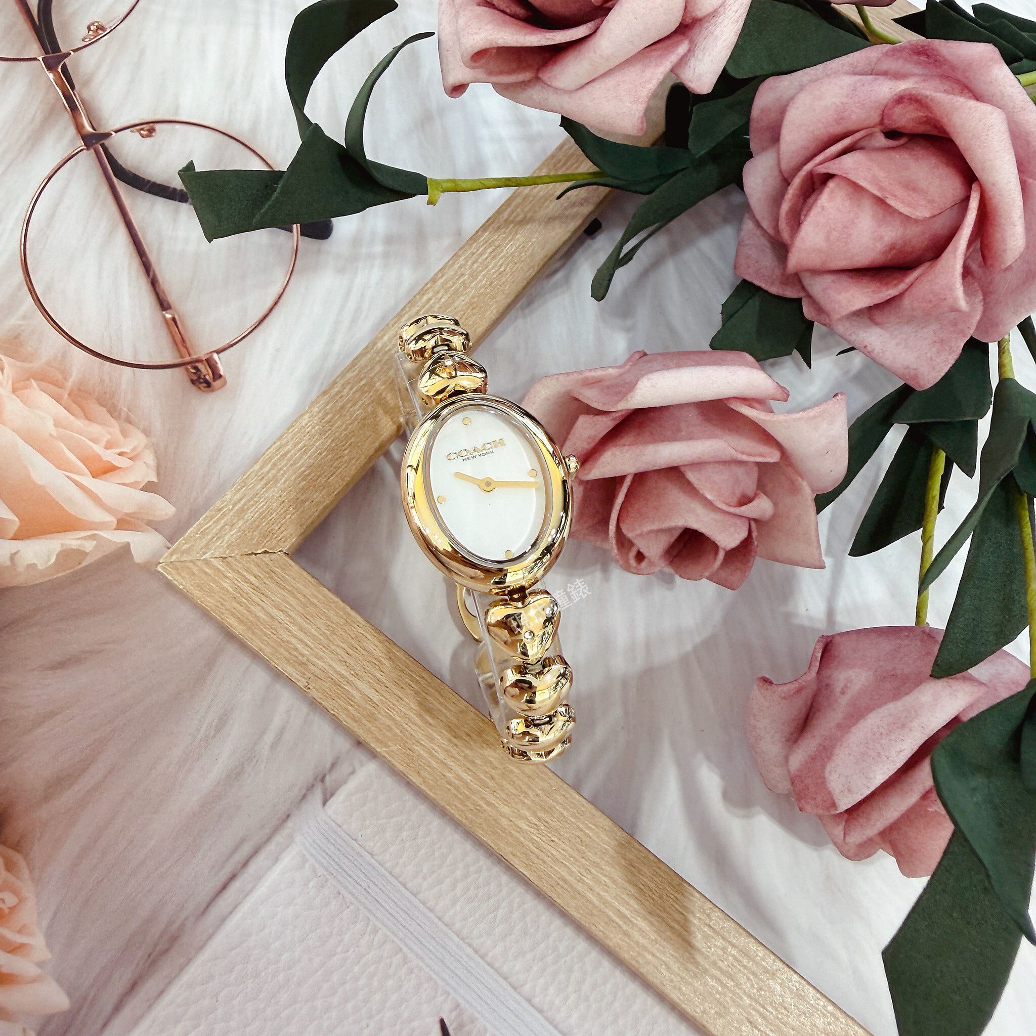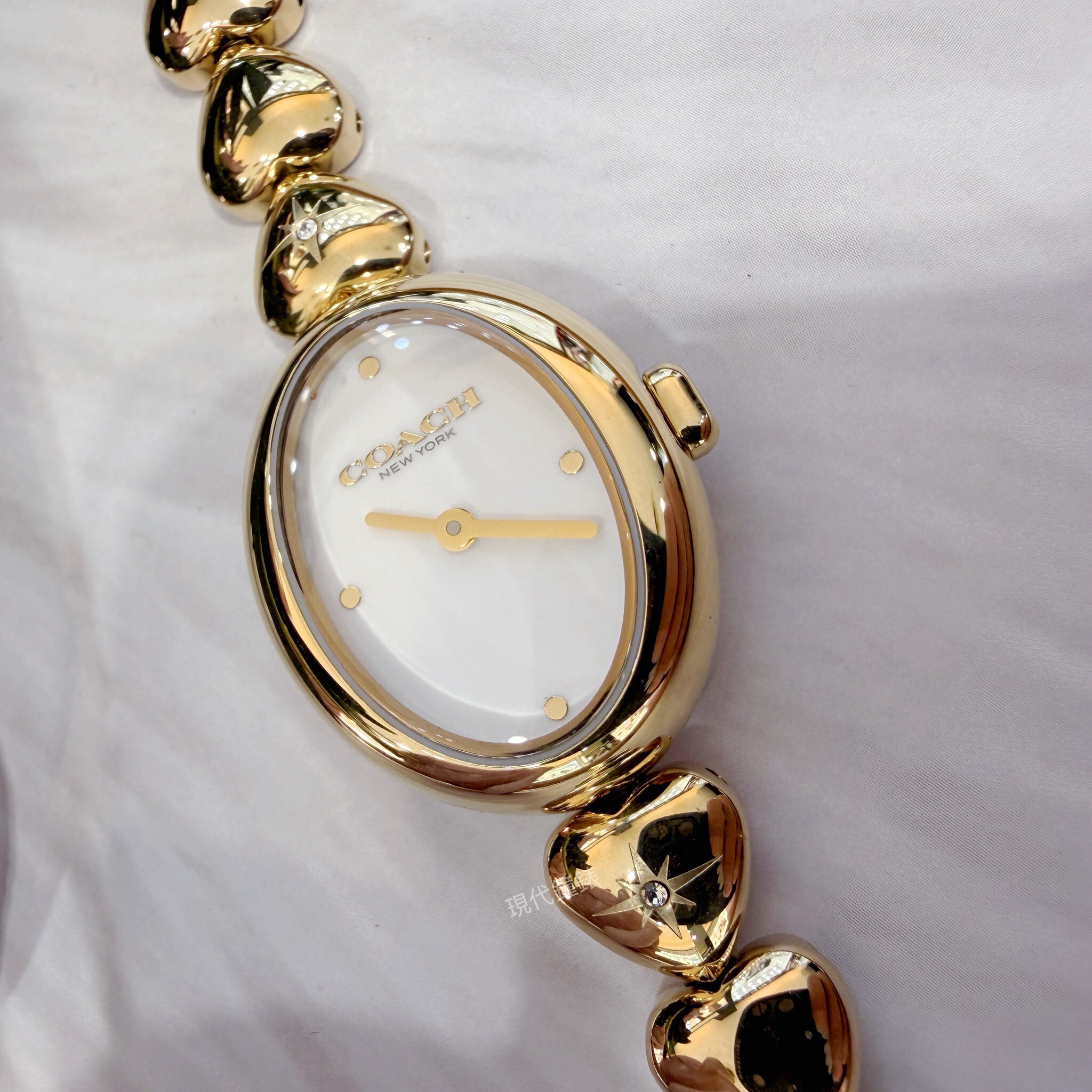 【COACH】Sammy 時尚橢圓愛心造型金色女錶CO14504638 22mm 現代鐘錶