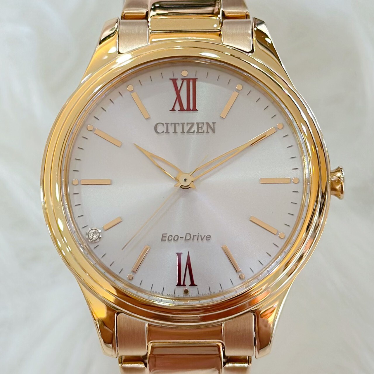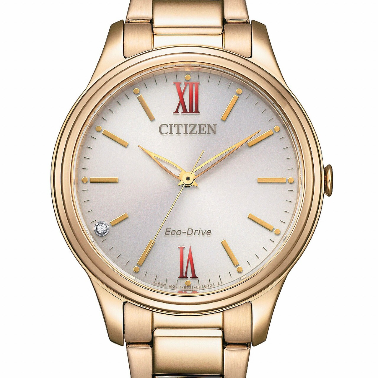 • 8點鐘刻度面板鑲有一顆水晶