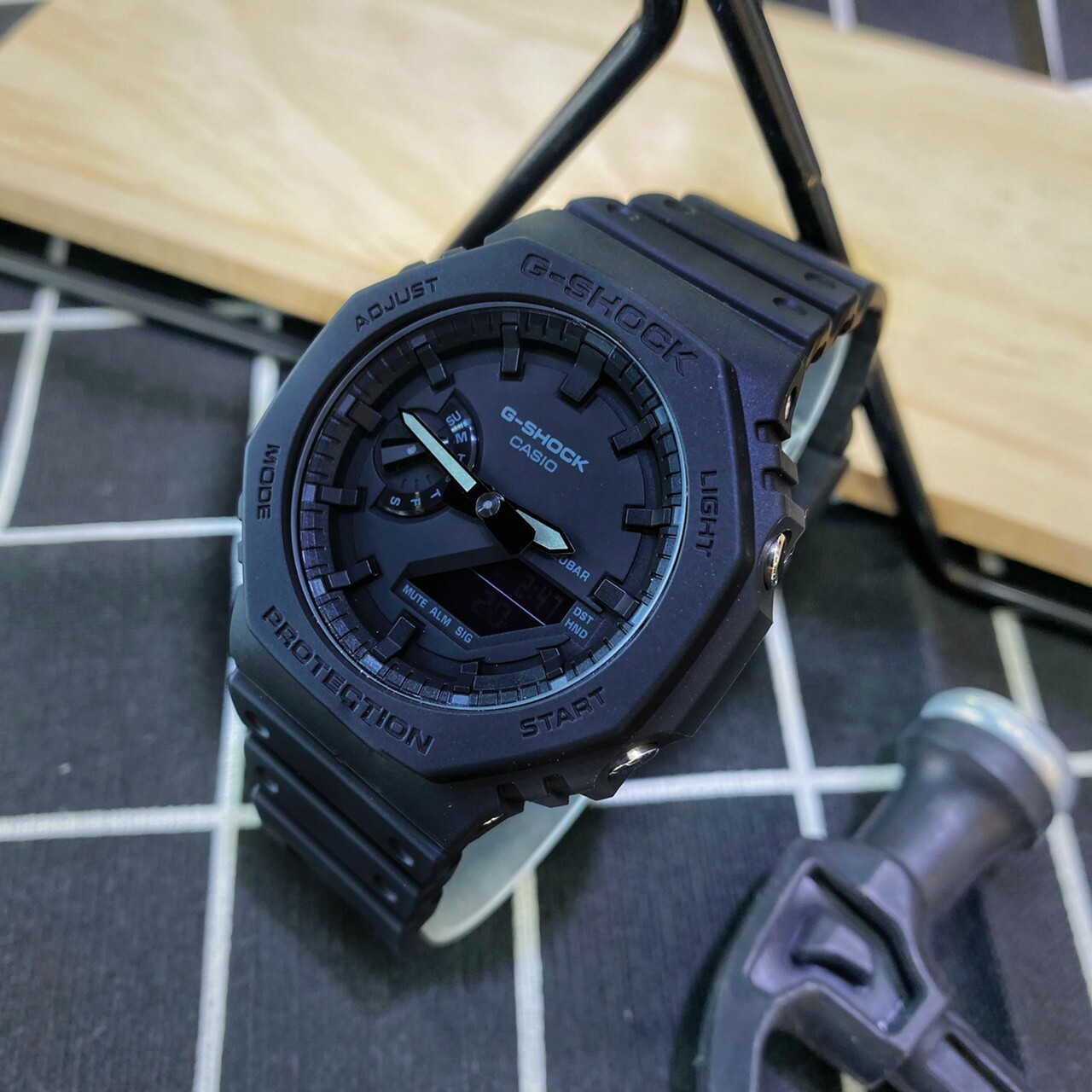 【G-SHOCK 卡西歐】全黑八角殼形雙顯電子錶 GA-2100-1A1 現代鐘錶