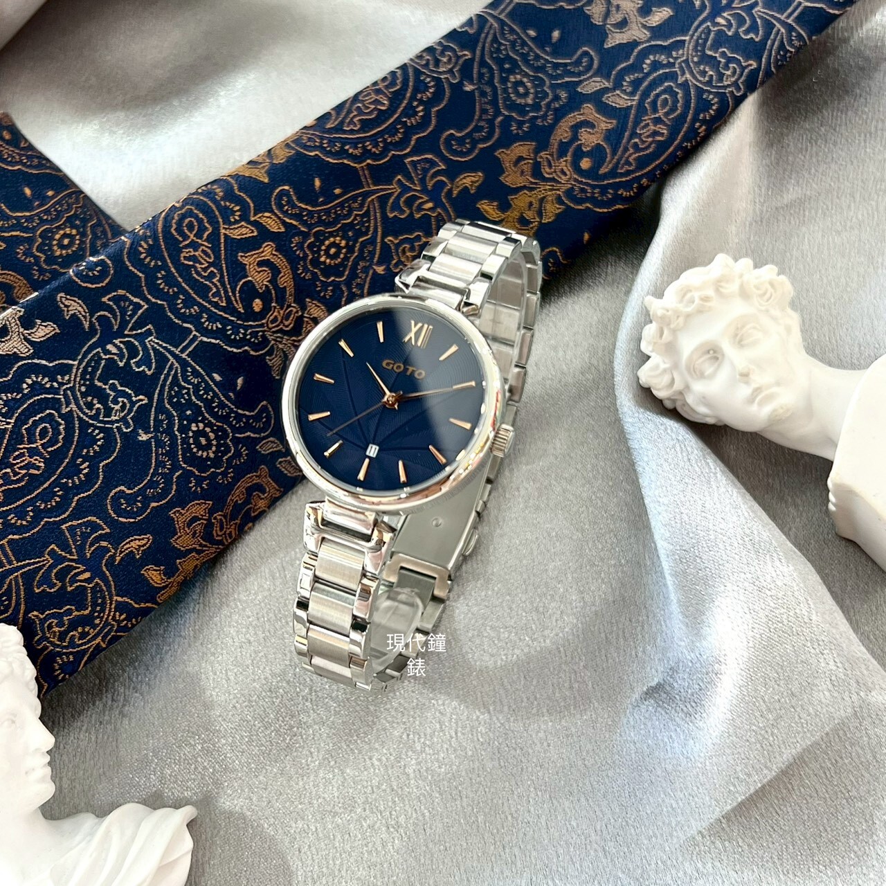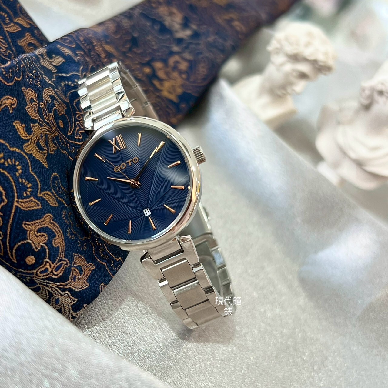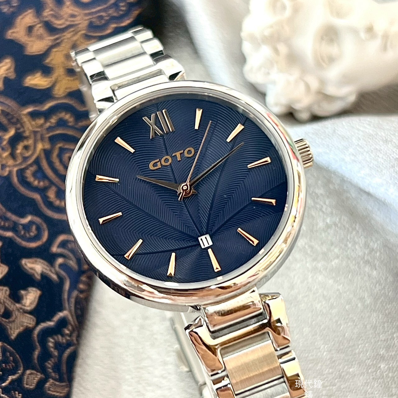 【GOTO】Peacock 孔雀系列-銀色x藍色 GS0098L-2S-B41 33mm 現代鐘錶
