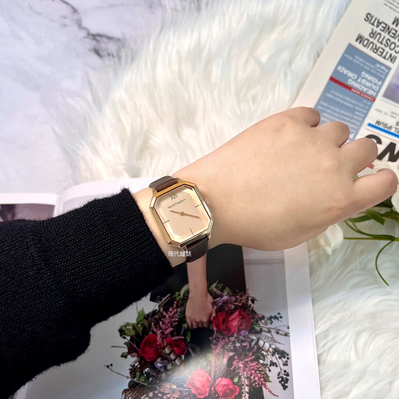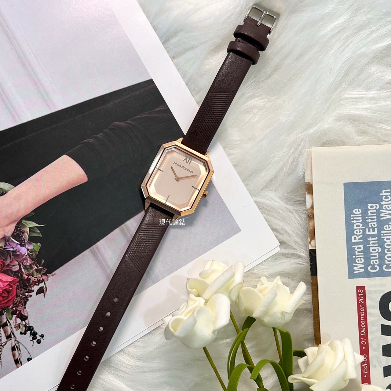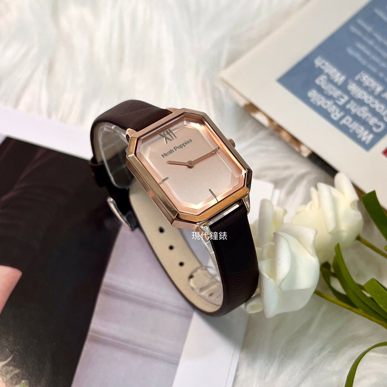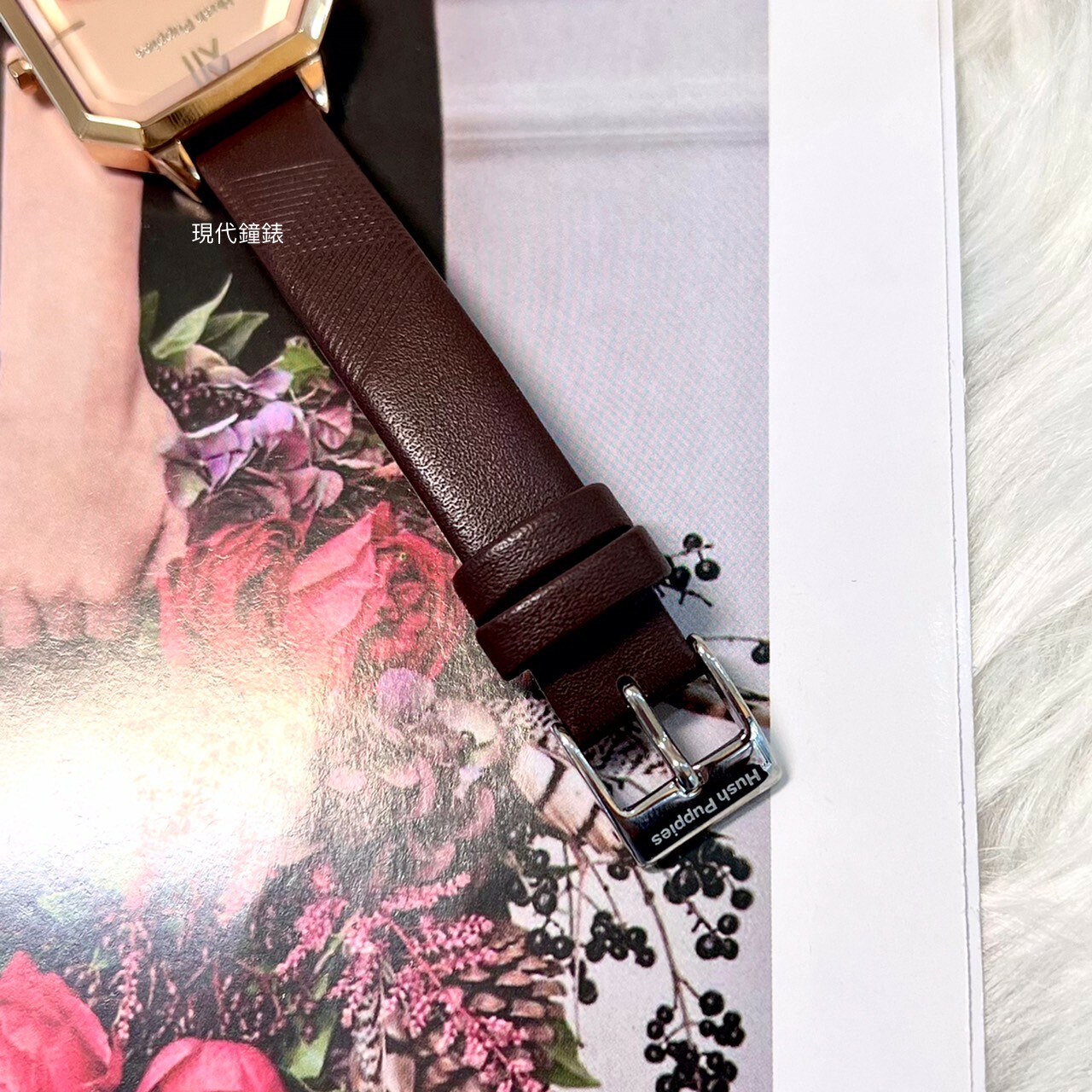 . 真皮錶帶線條壓紋,細膩輕巧的設計完美呈現柔美內斂的氣質。