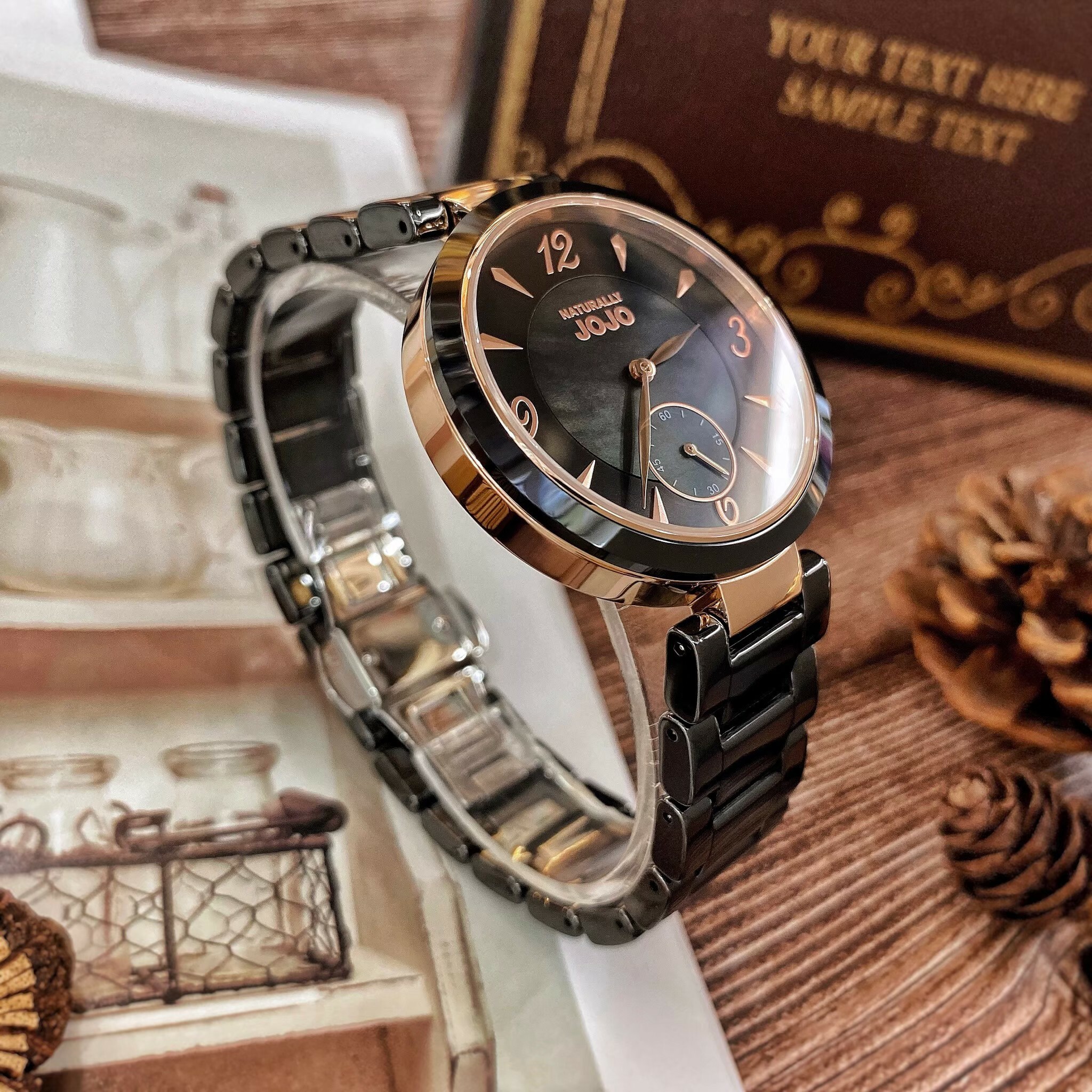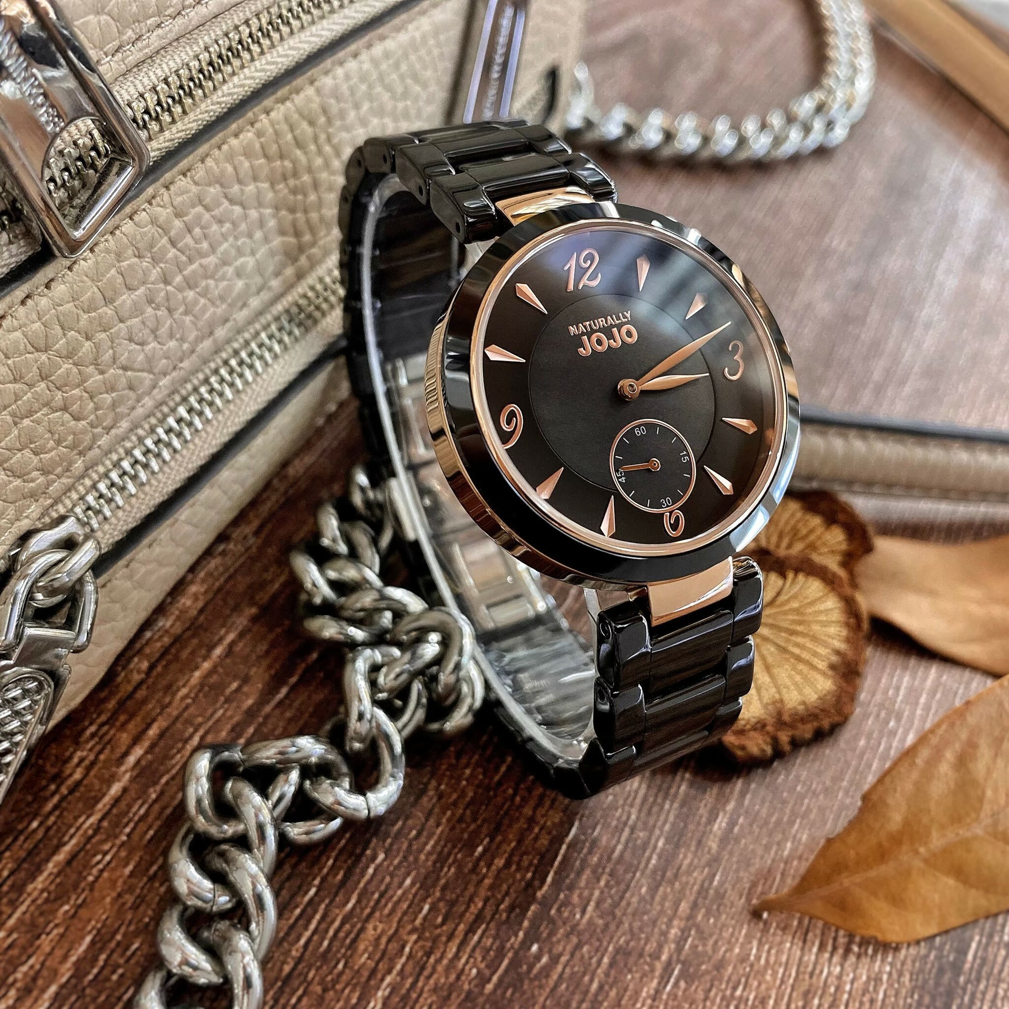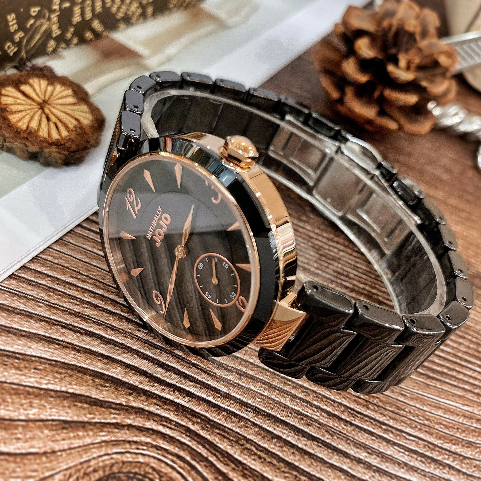 【NATURALLY JOJO】數字簡約小秒針陶瓷腕錶 JO96986-88R 37mm 現代鐘錶