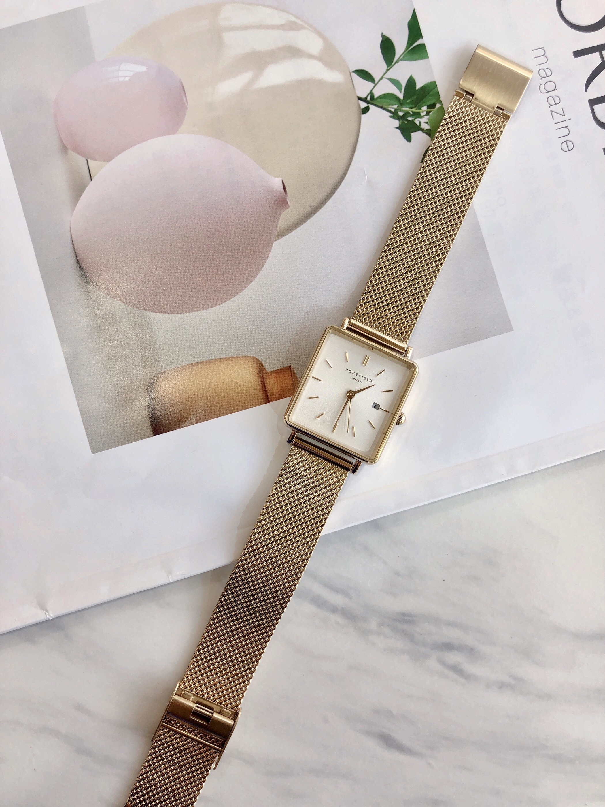 【ROSEFIELD】方殼銀面玫瑰金色米蘭鐵帶腕錶 QWSG-Q03 27mm 現代鐘錶