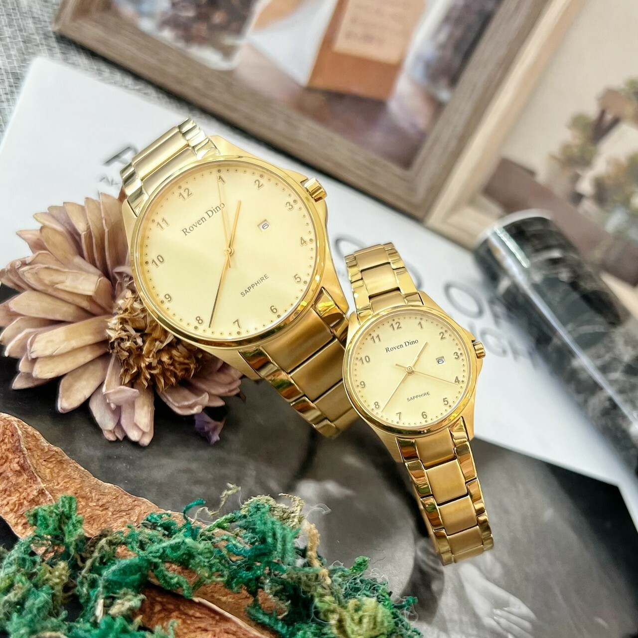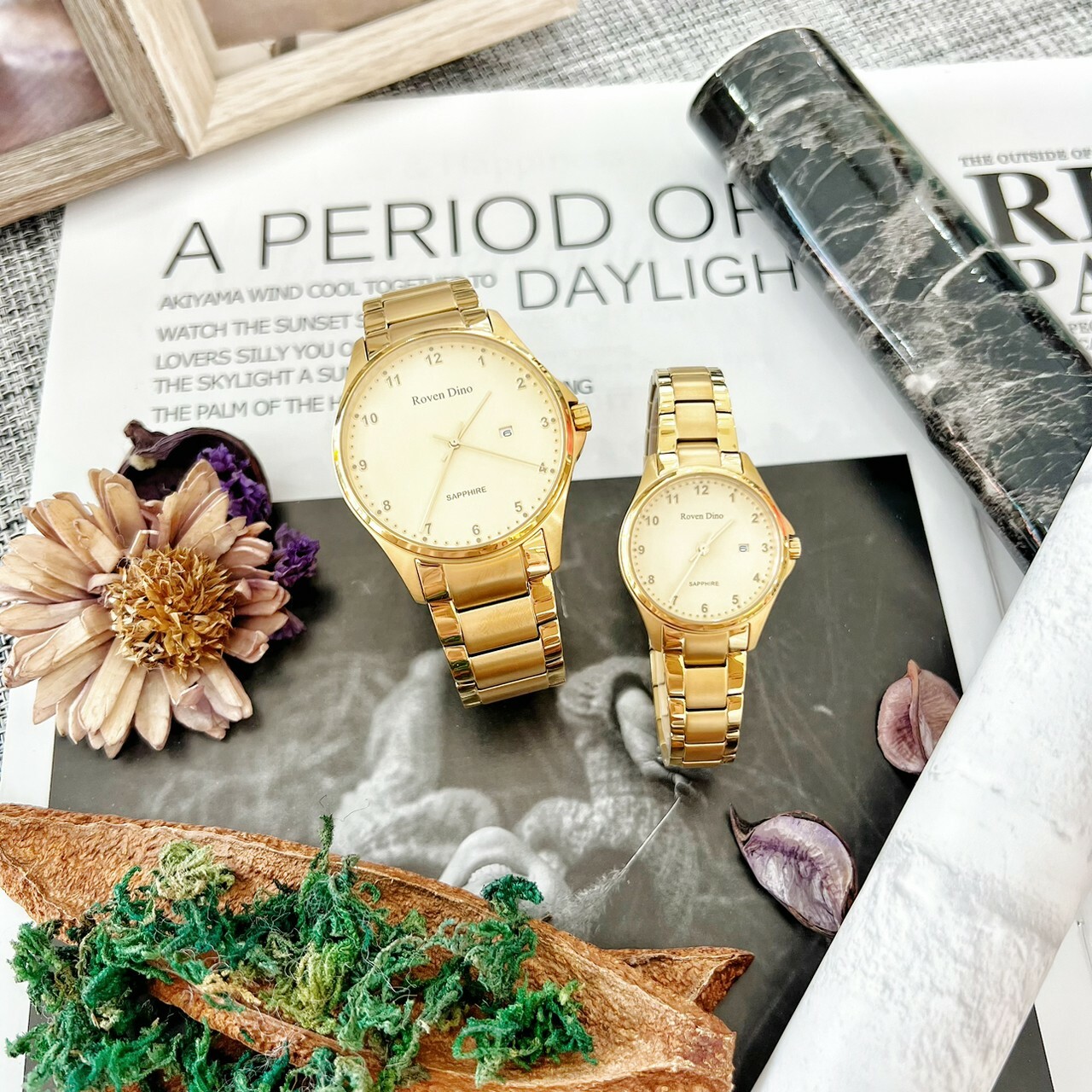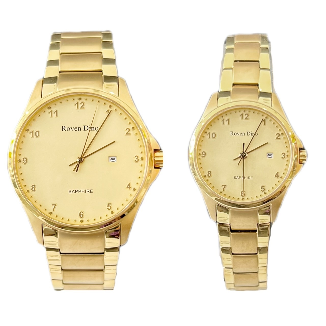 【Roven Dino羅梵迪諾】金色數字鈦金屬對錶 RD6096MG 42mm/RD6096LG 28mm 現代鐘錶