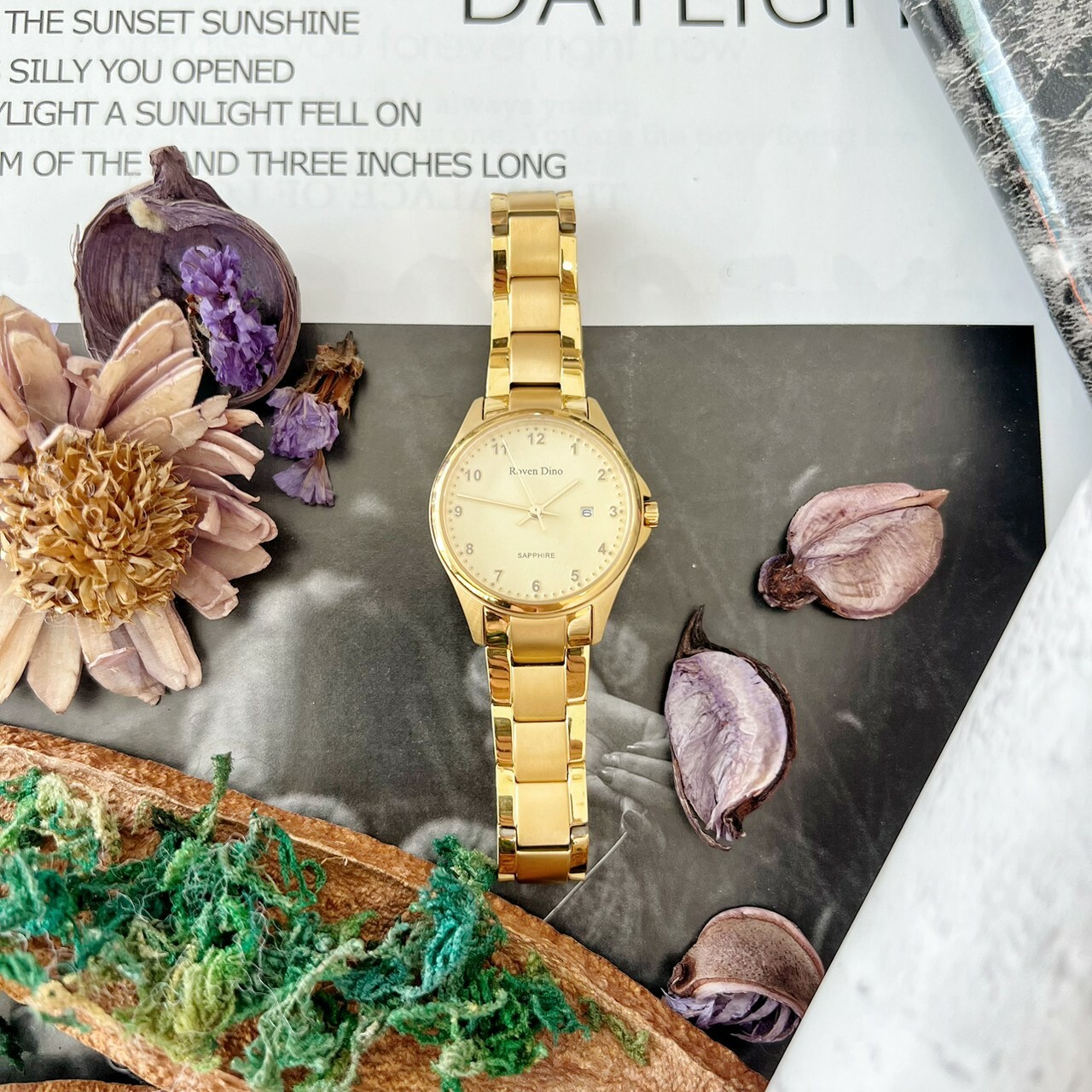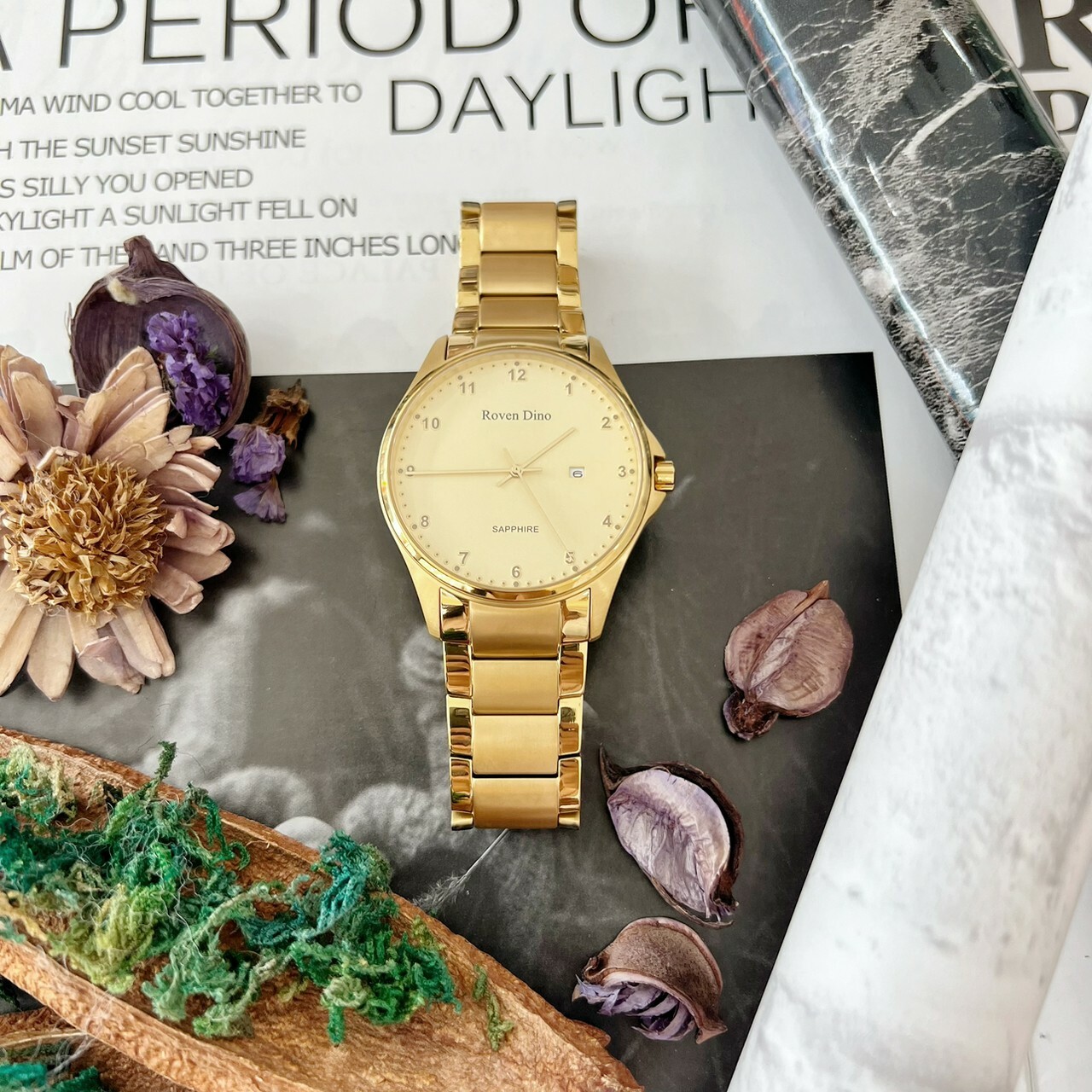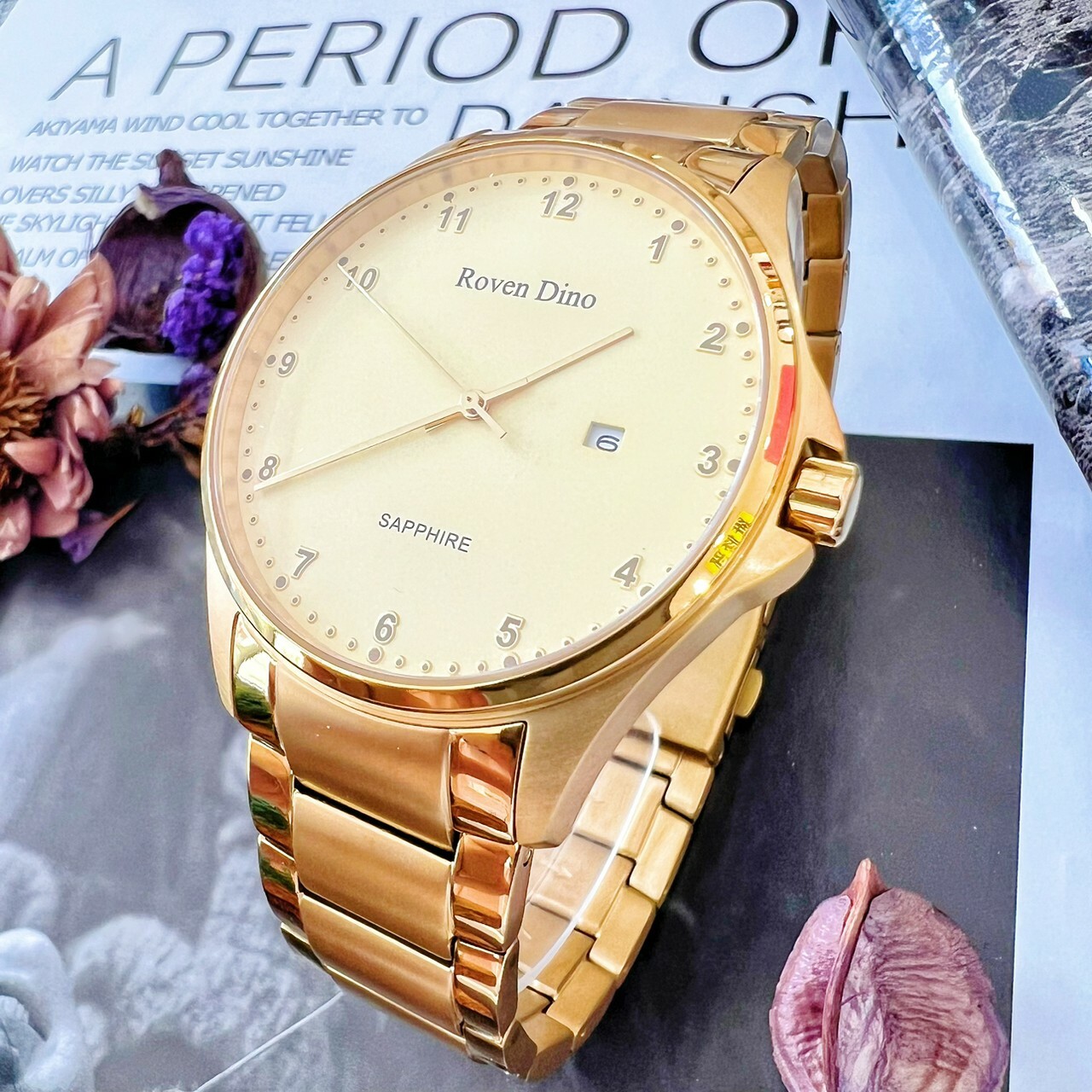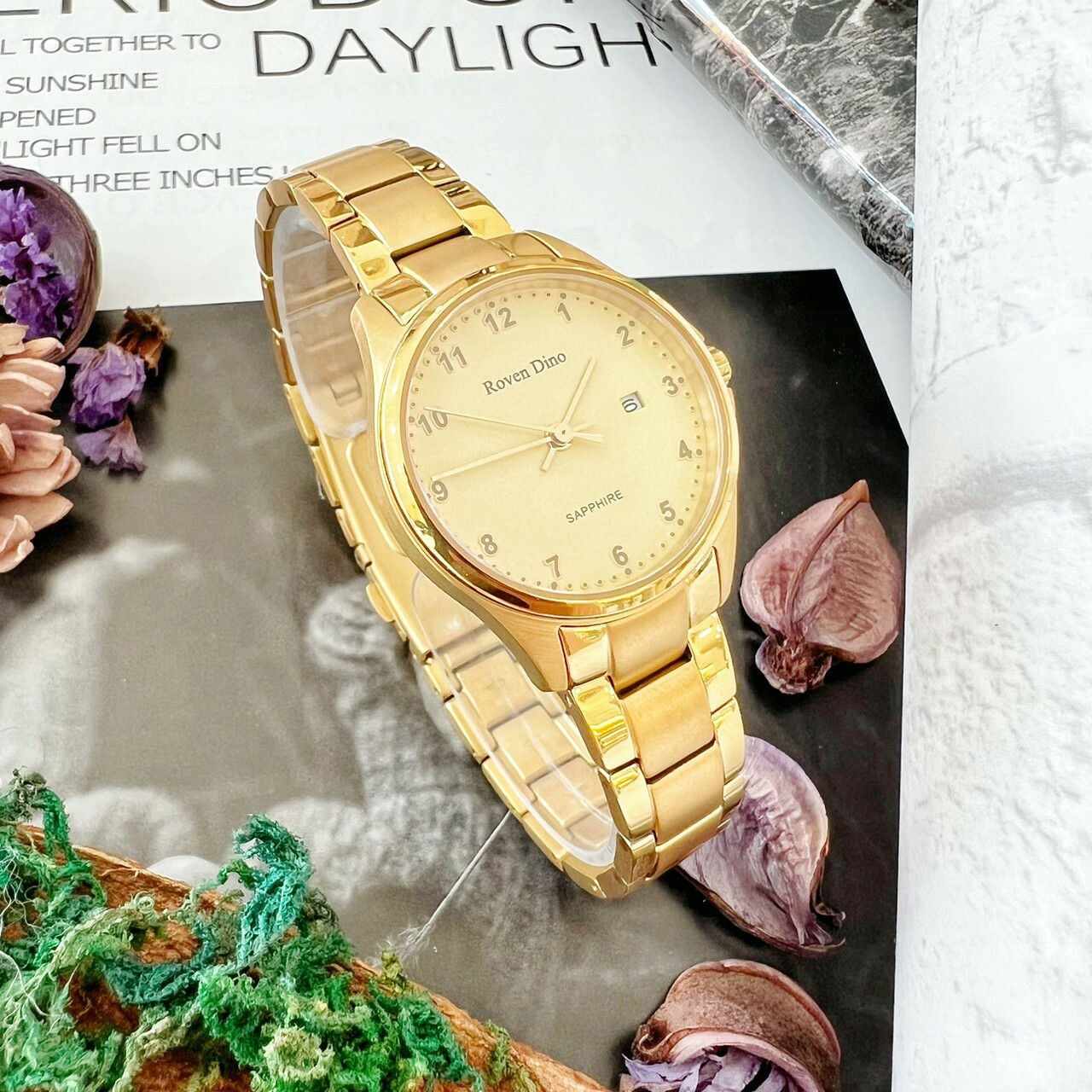 【Roven Dino羅梵迪諾】金色數字鈦金屬對錶 RD6096MG 42mm/RD6096LG 28mm 現代鐘錶