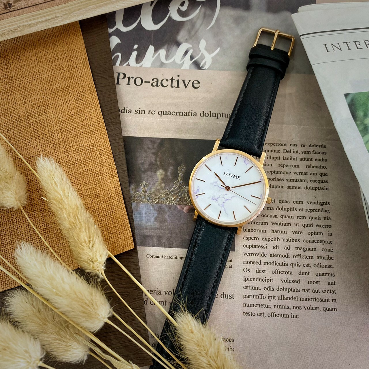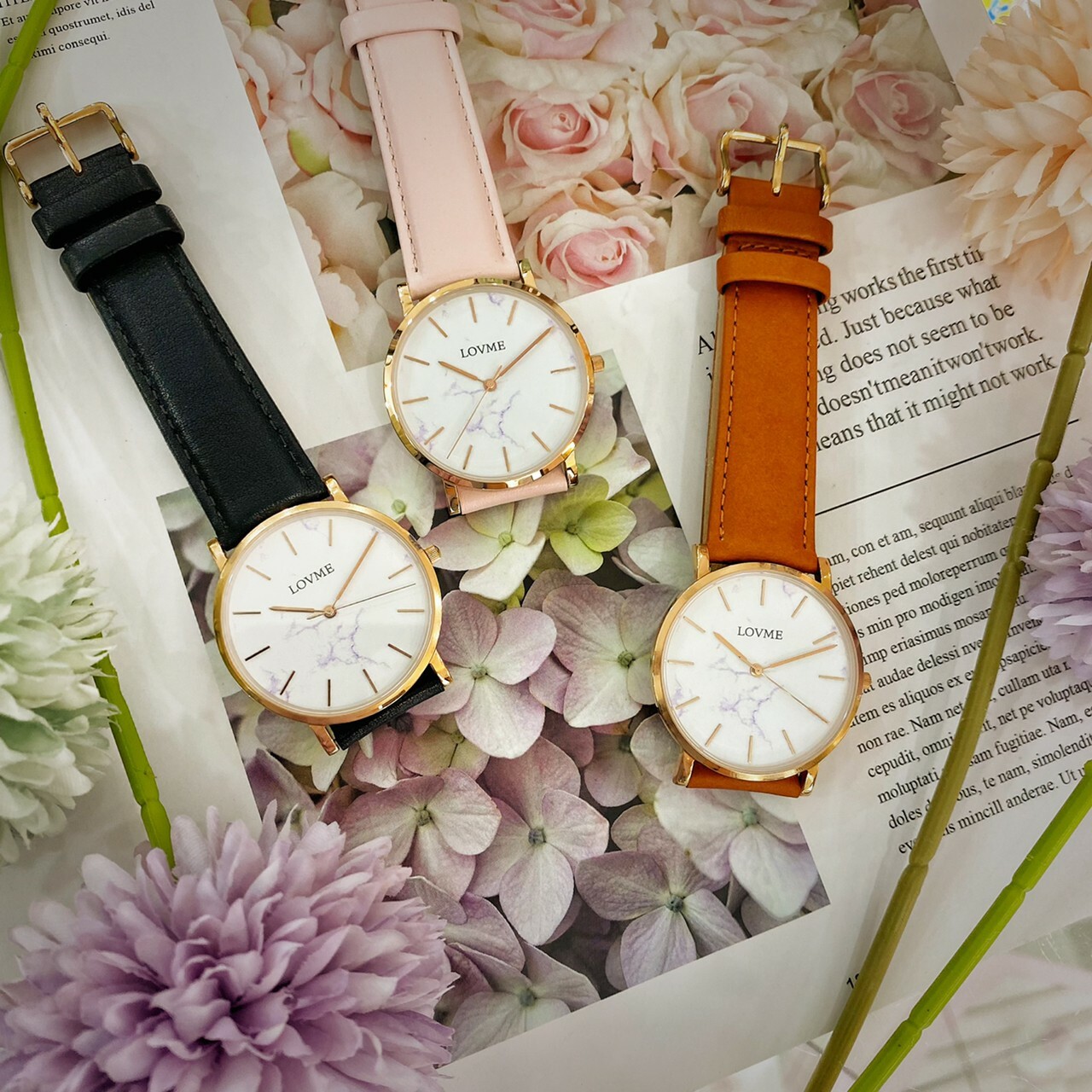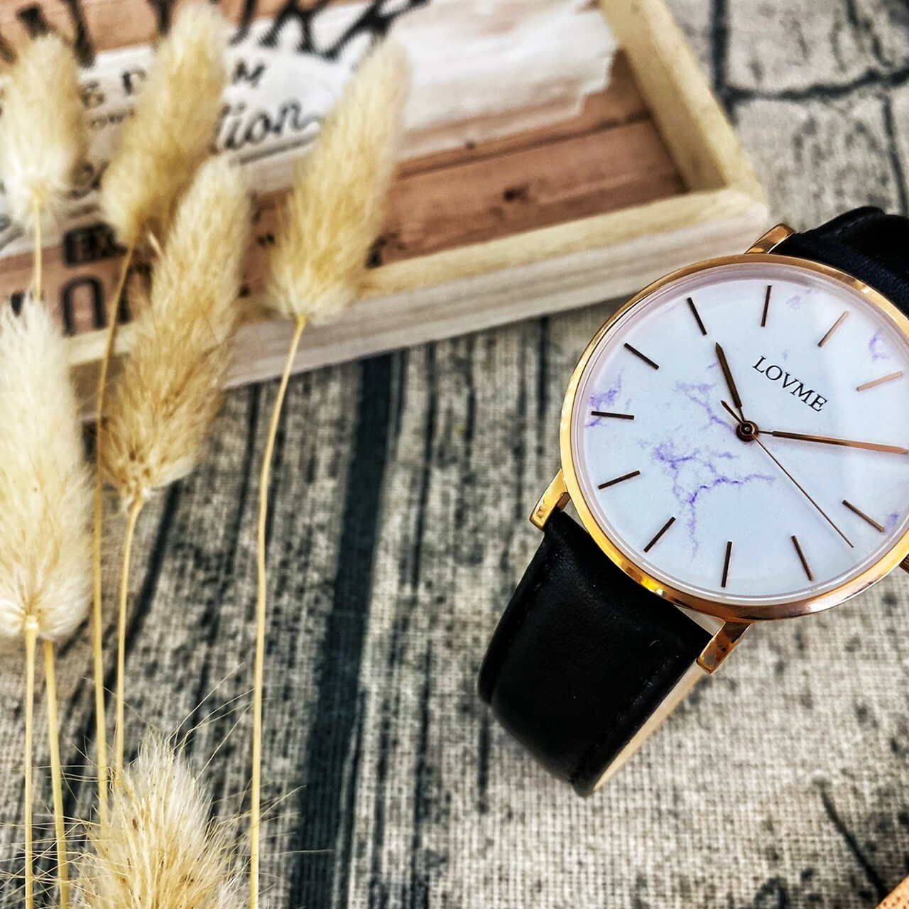 【LOVME】小清新大理石紋皮革錶帶 VL5012B-43-241(黑) 38MM 現代鐘錶