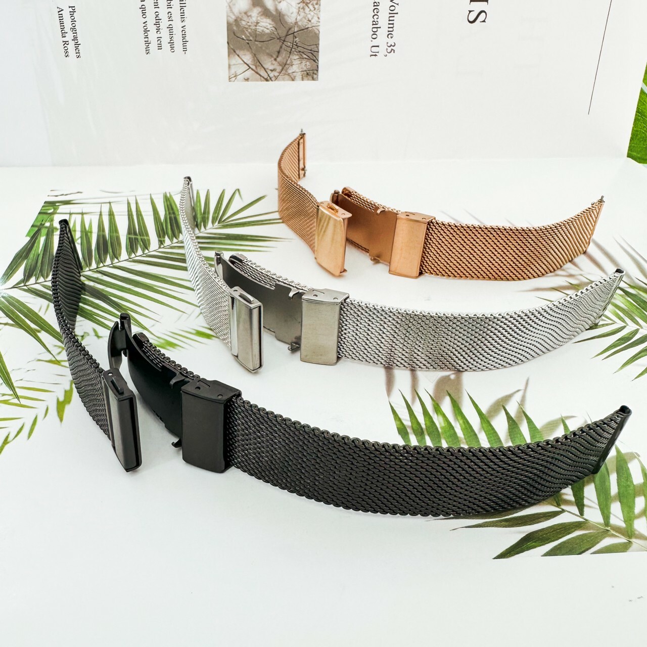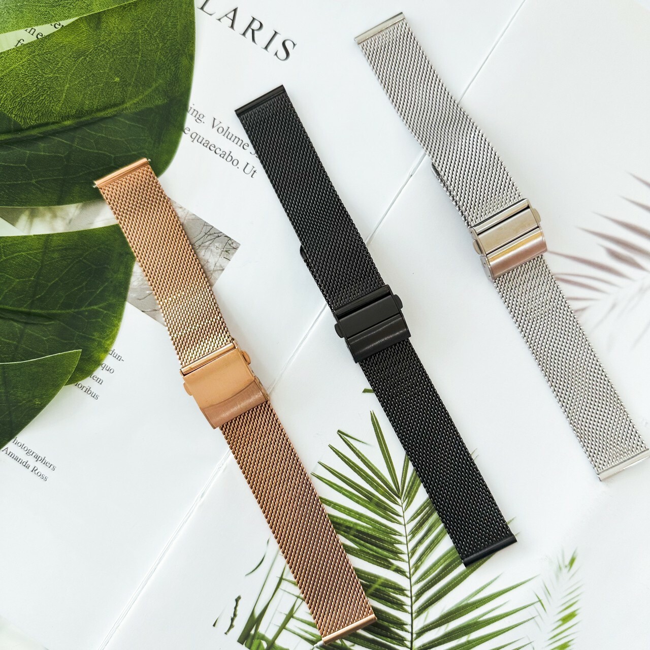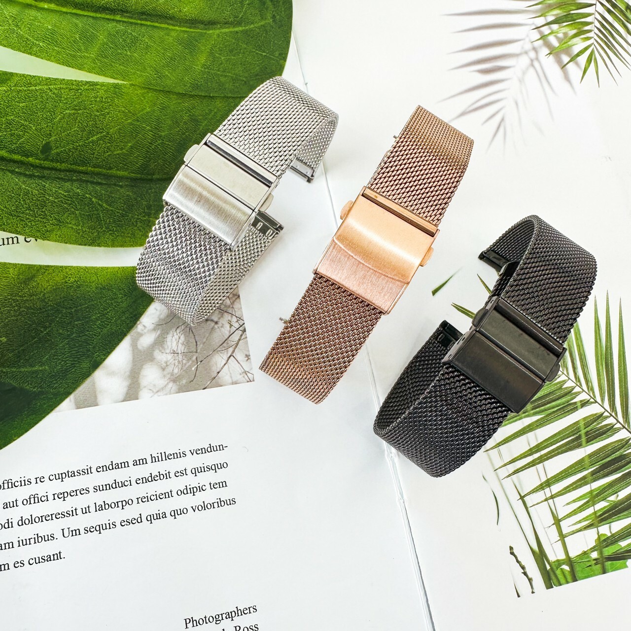 【鐵帶】實心不鏽鋼米蘭錶帶(摺疊扣) 黑色/銀色/玫瑰金色 (16mm~24mm) 現代鐘錶