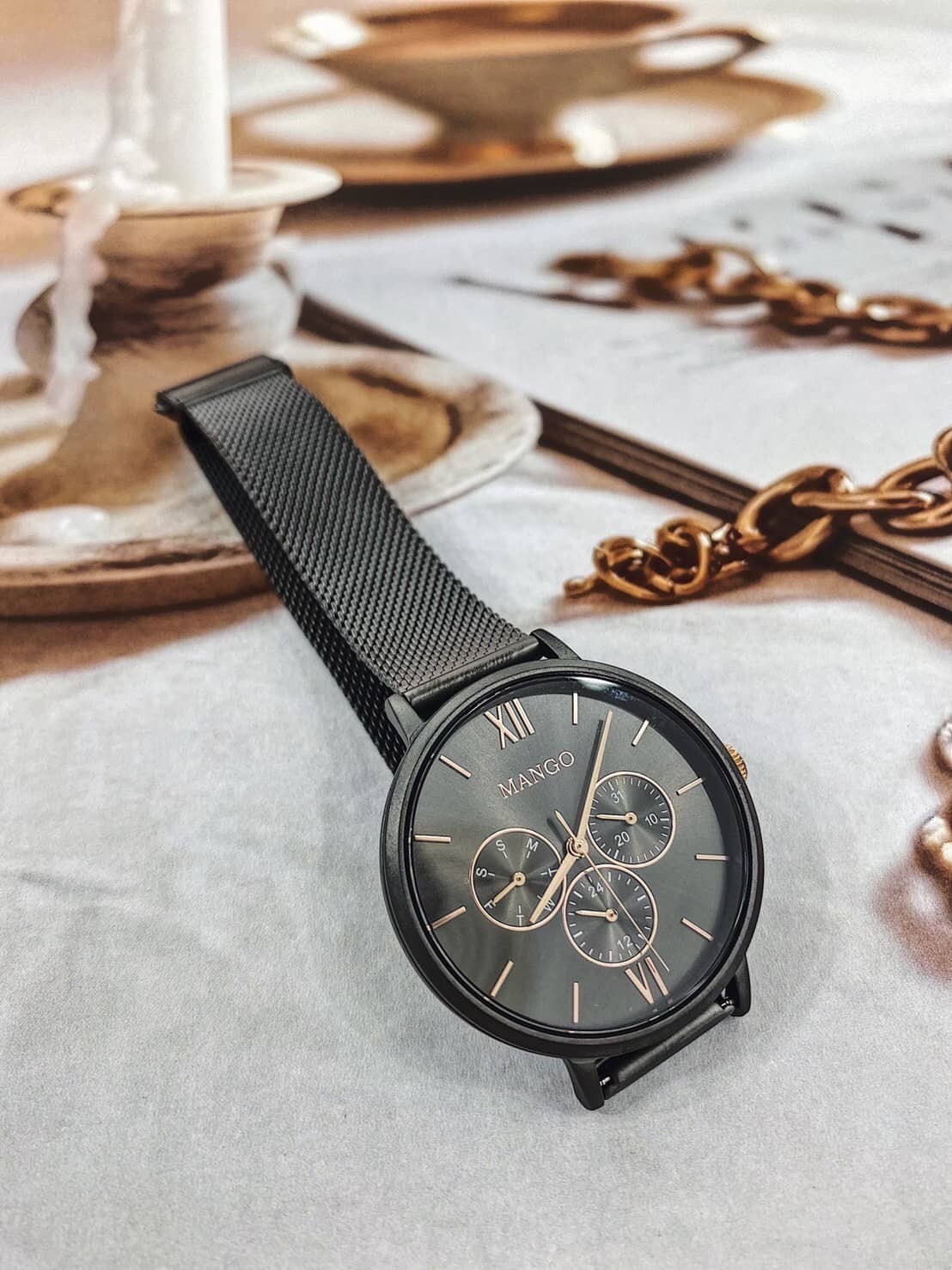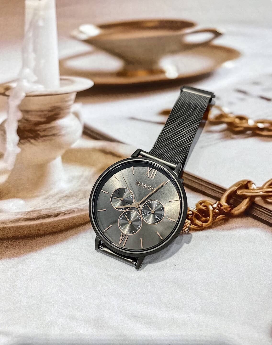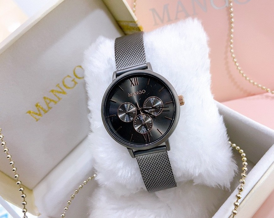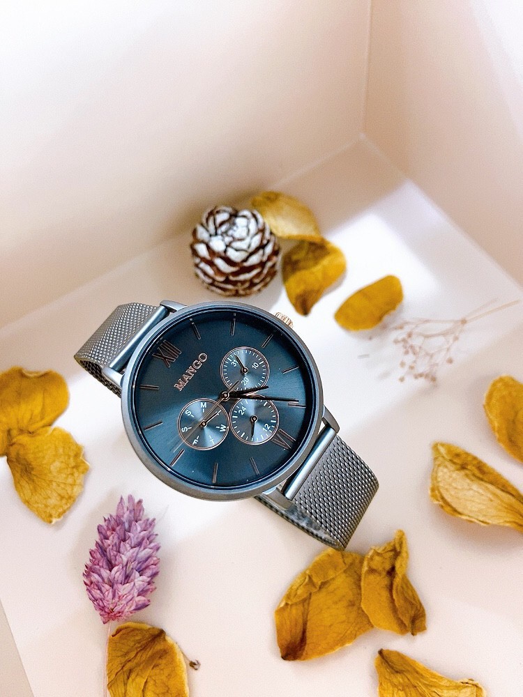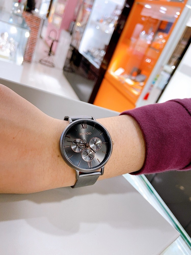 【MANGO】簡約三眼時尚米蘭帶腕錶 槍x灰 MA6766L-GY 38mm 現代鐘錶