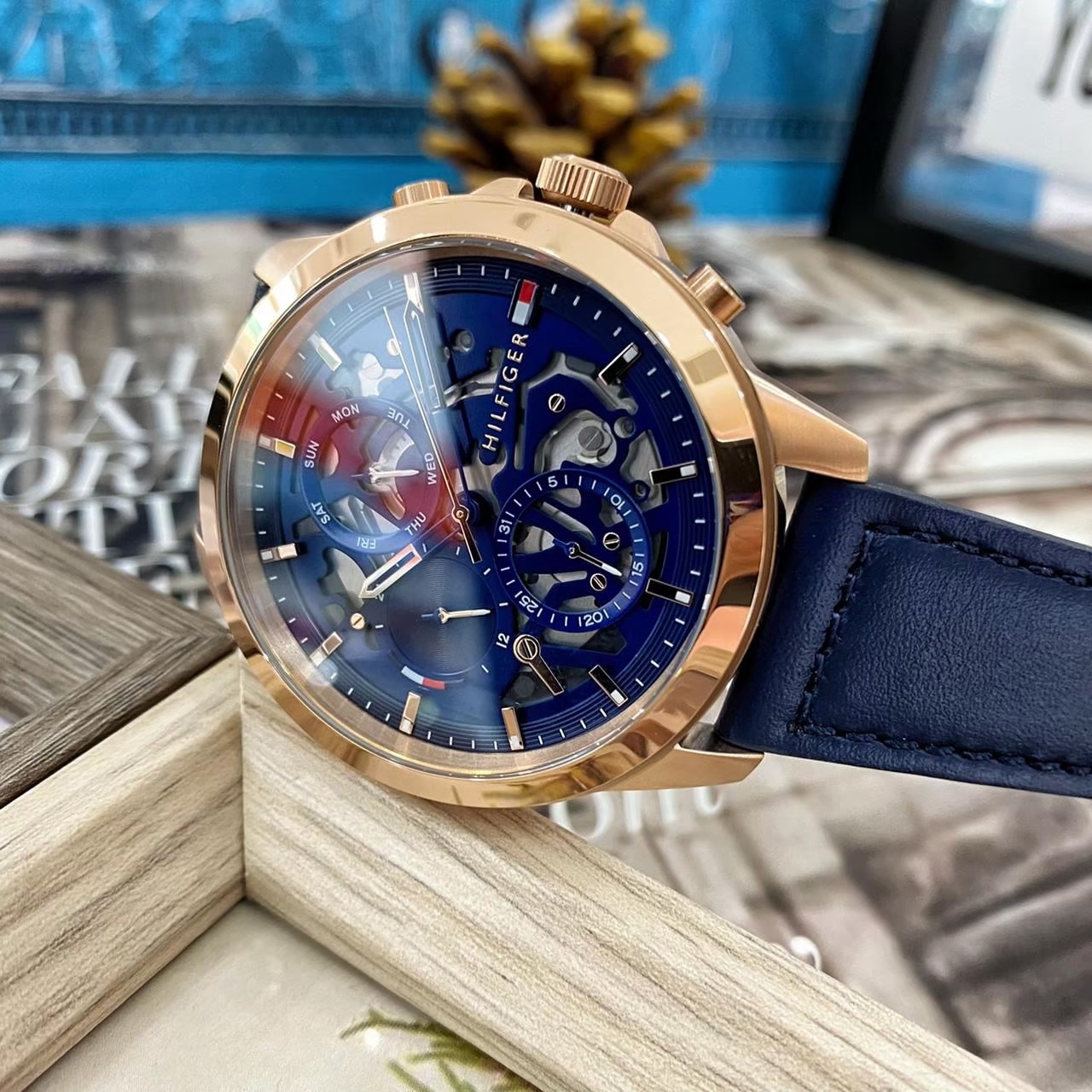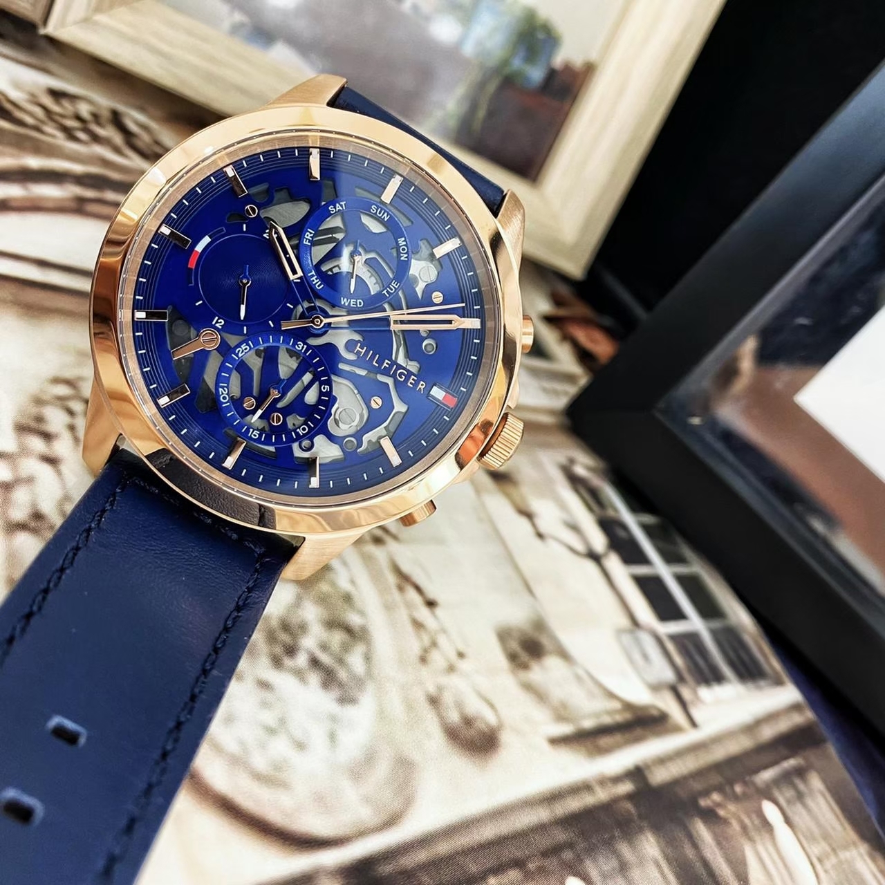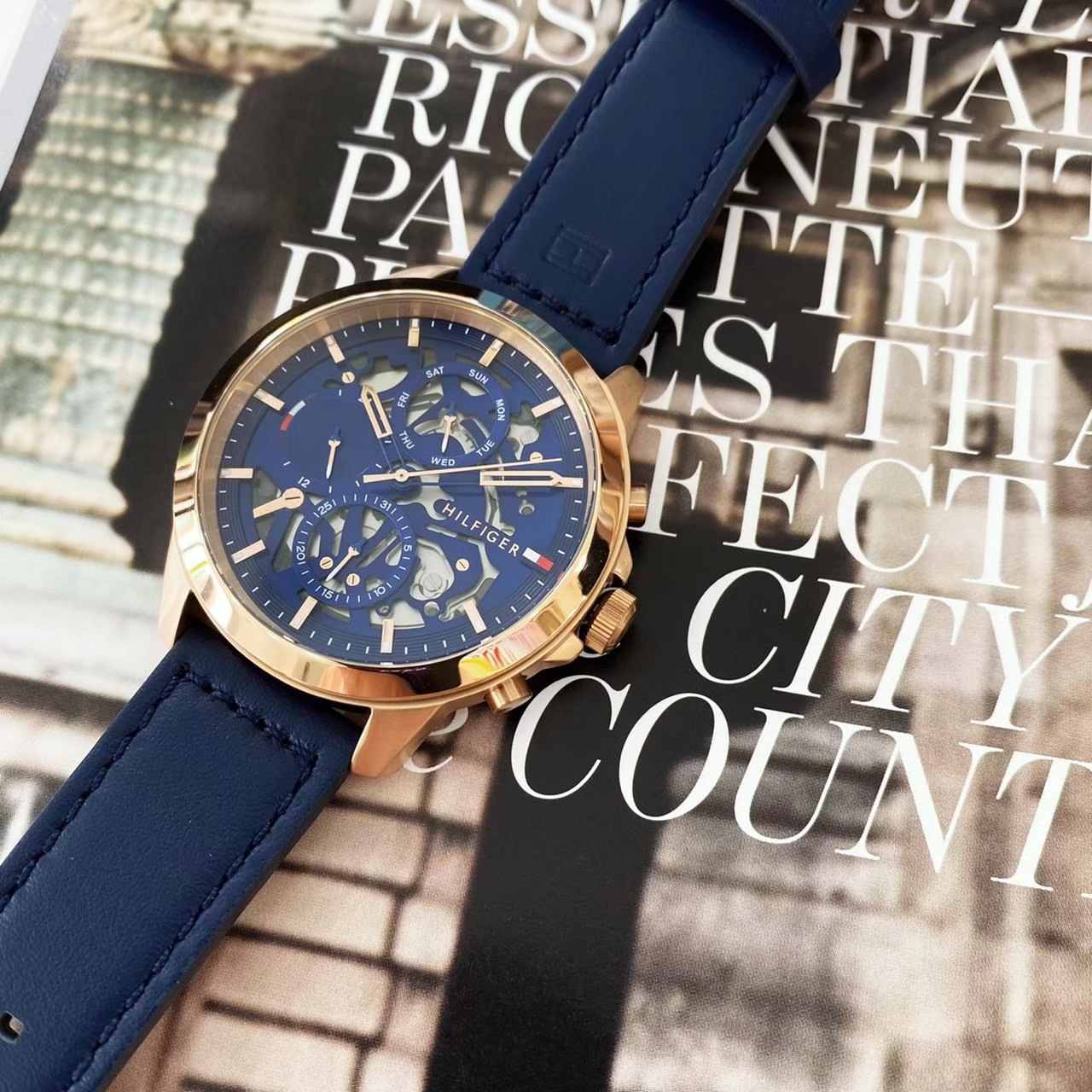 【Tommy Hilfiger】鏤空藍帶風格專屬男錶 1710475 44mm 現代鐘錶