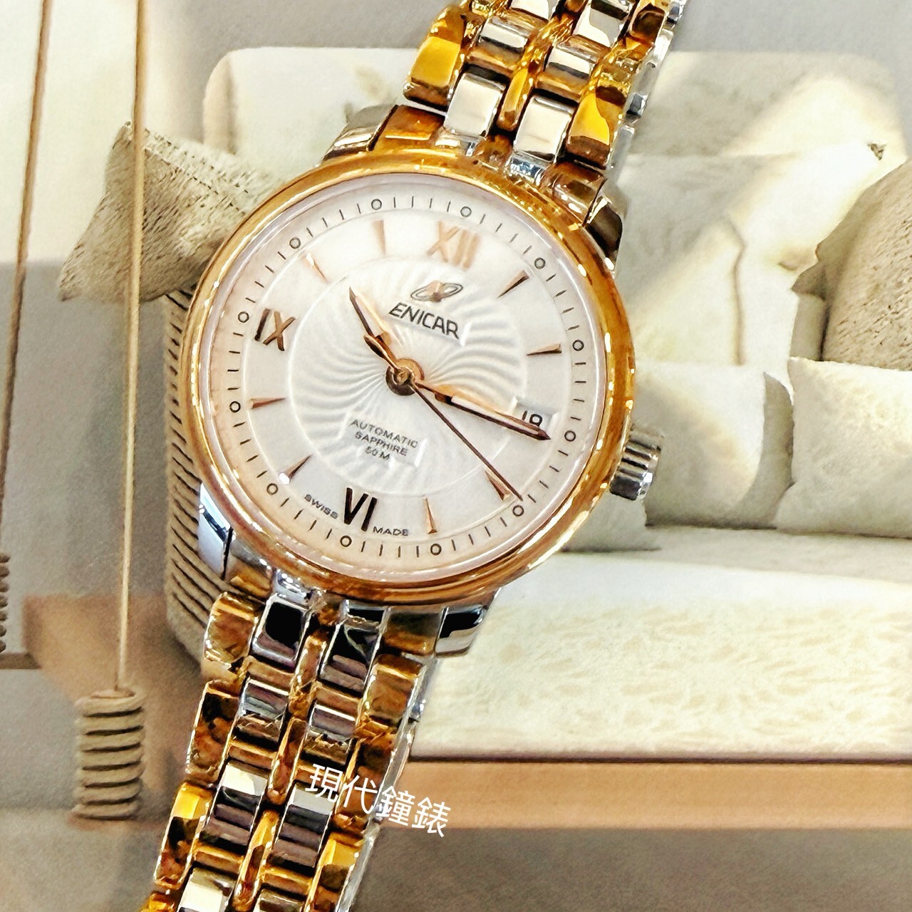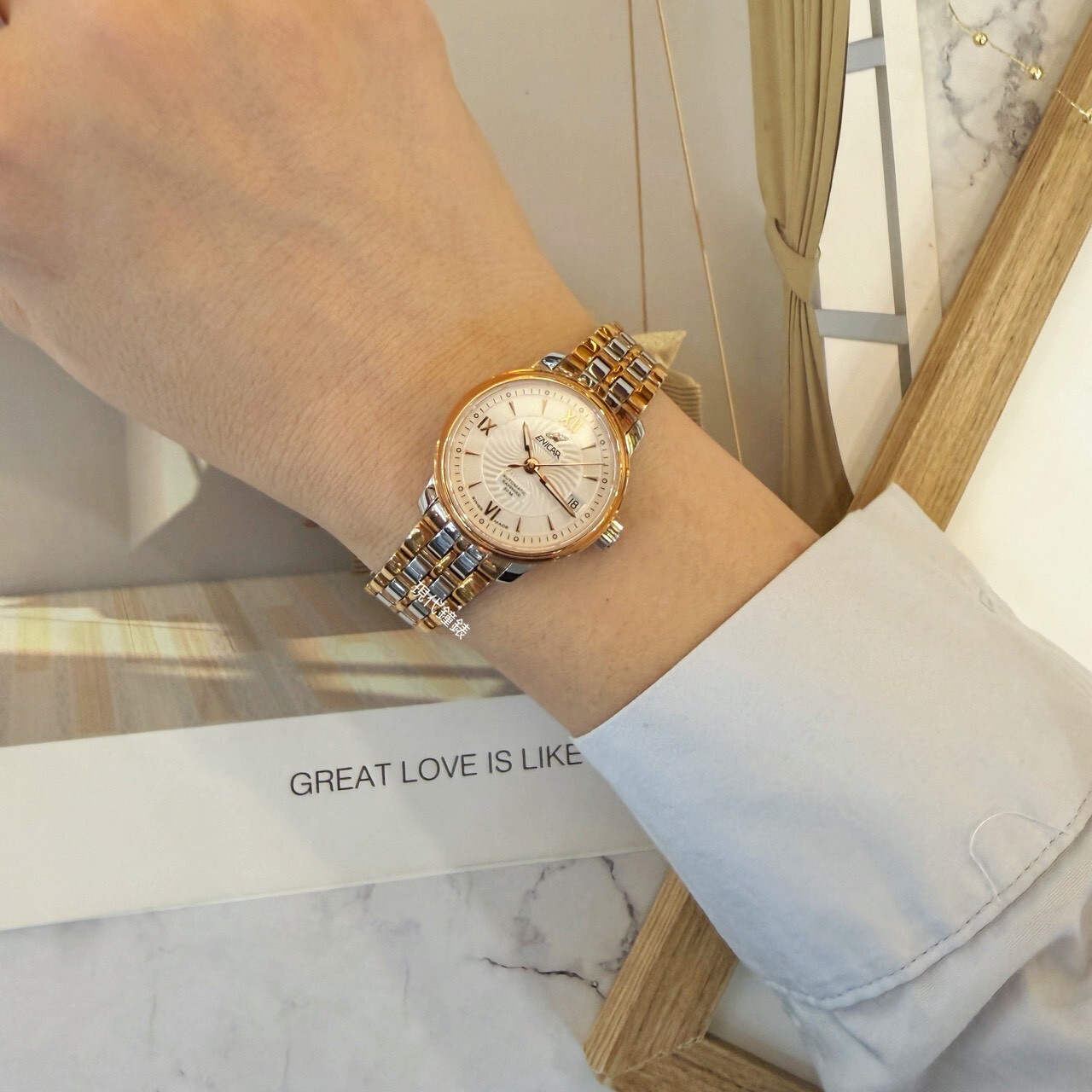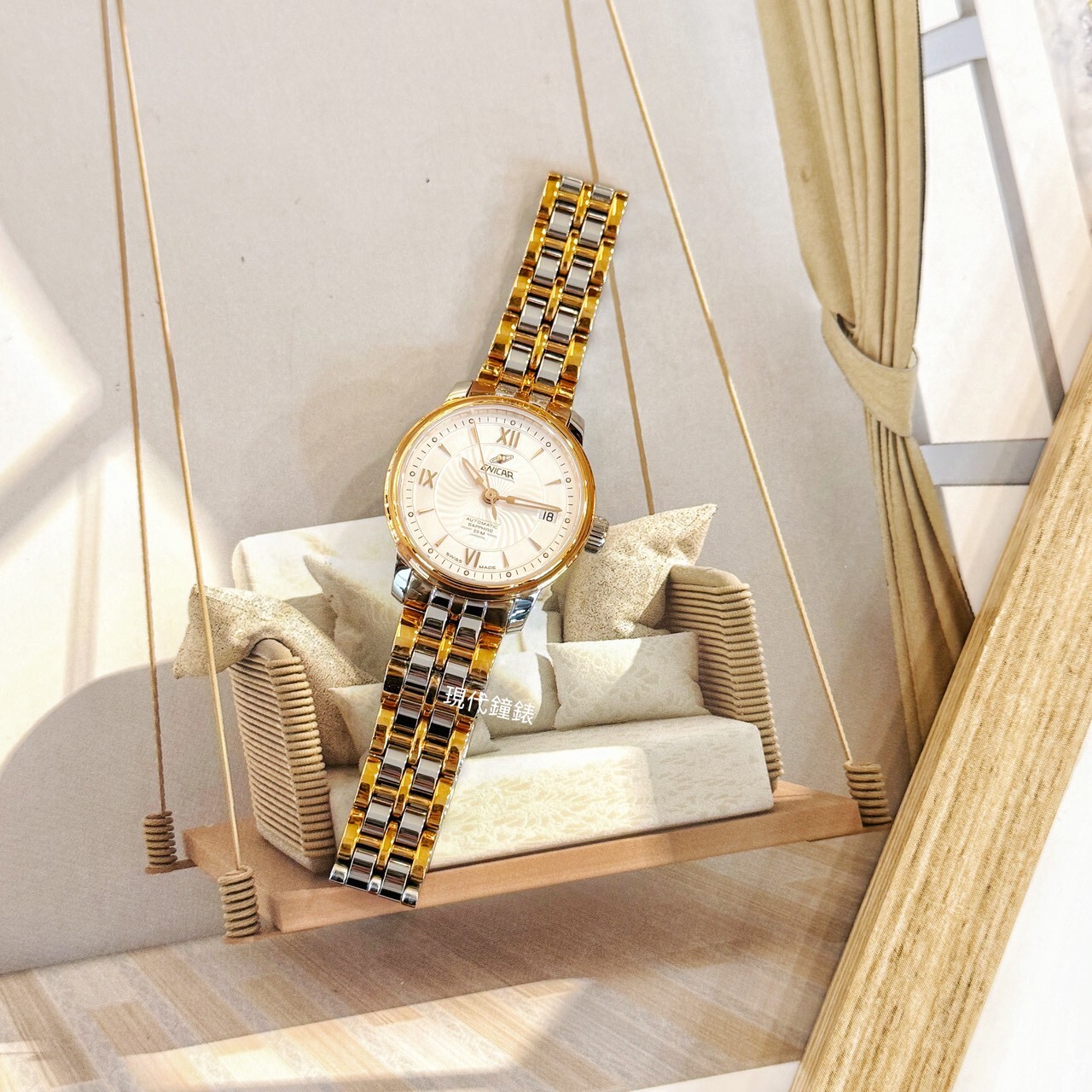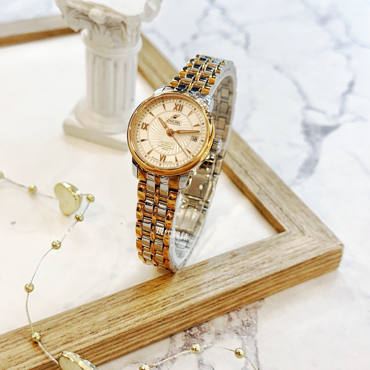 • 玫瑰金搭配鋼色錶帶柔美呈現