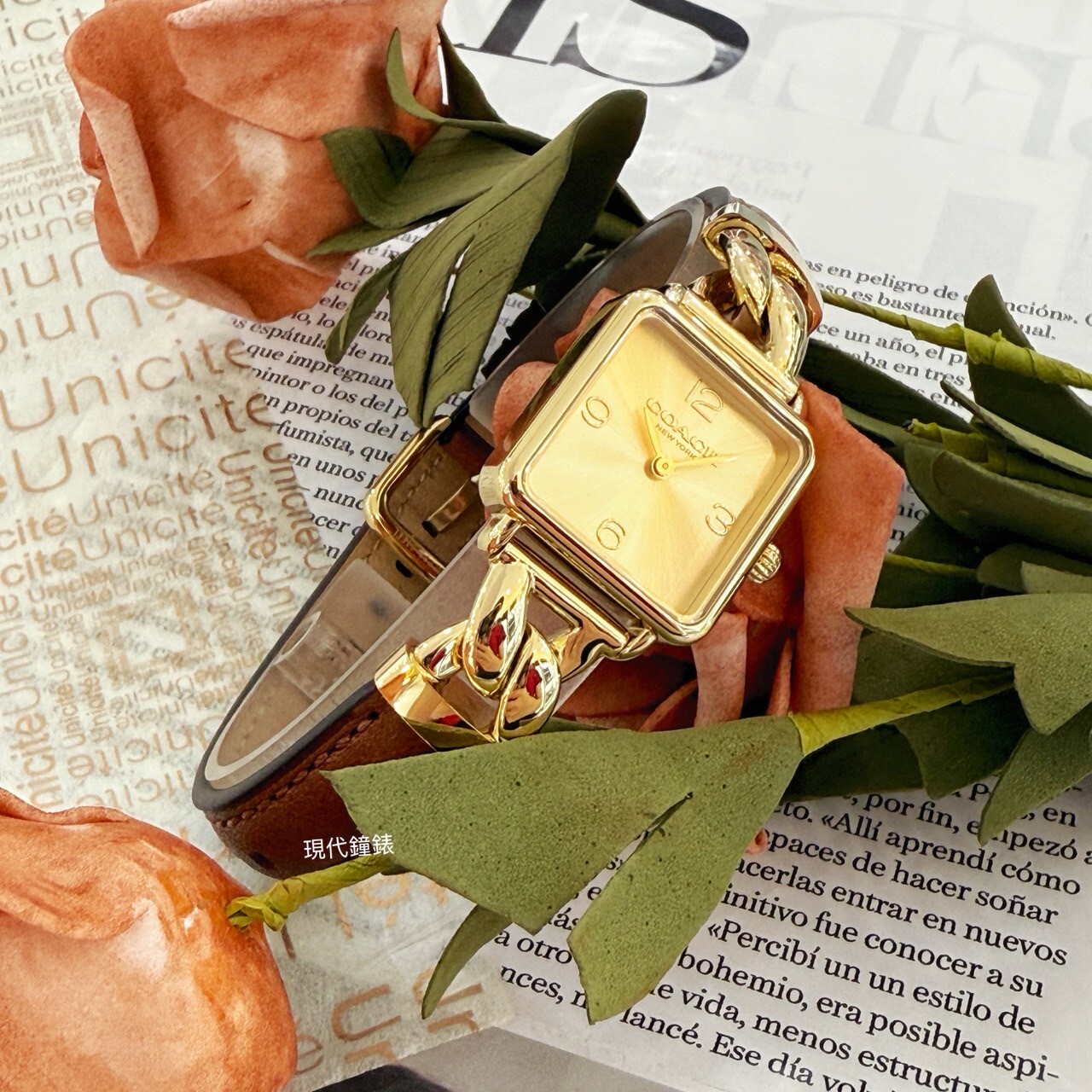 • 造型鏈帶拼接皮革錶