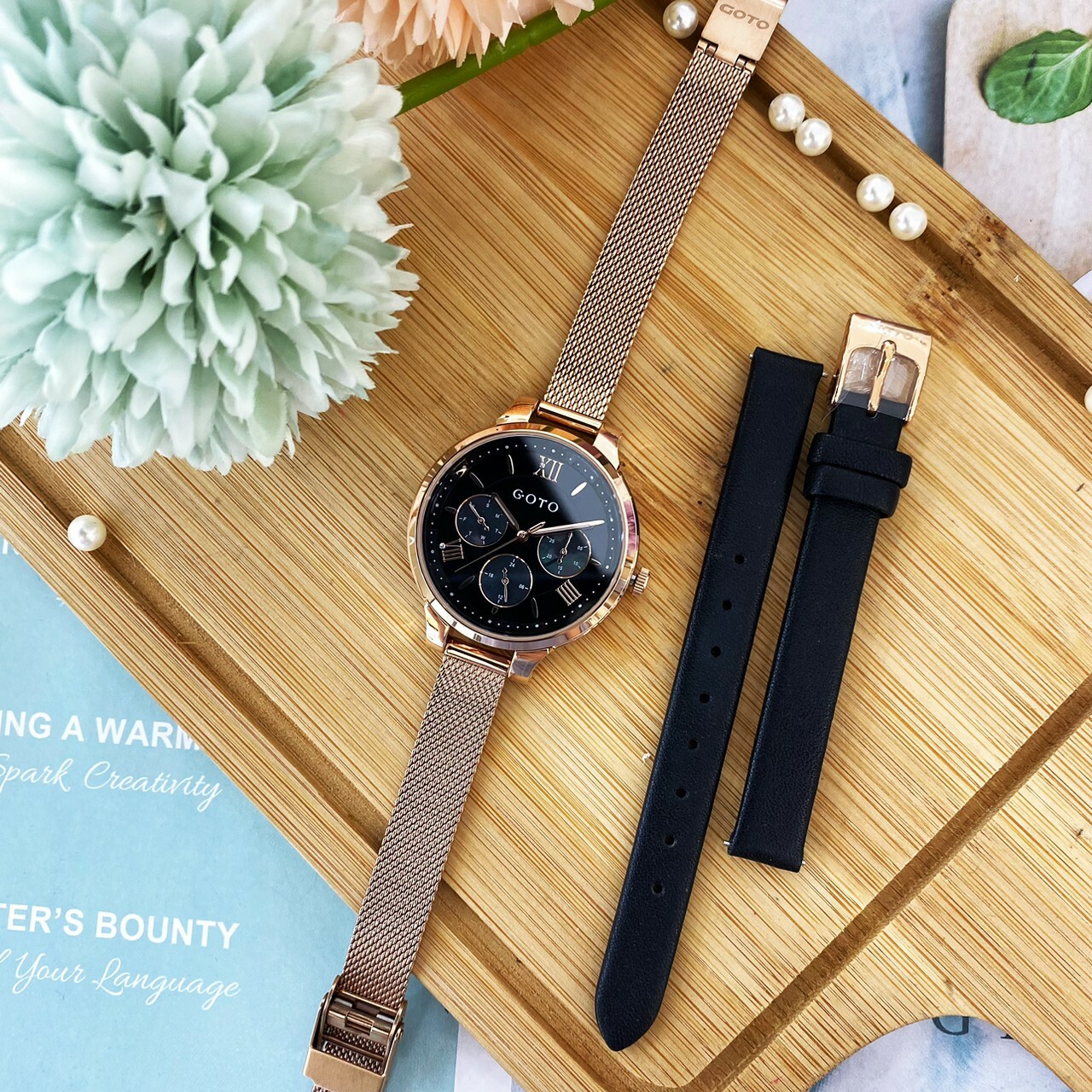 【GOTO】夢幻花園米蘭帶套裝組GM6373L-44-341-3 (黑) /GM6373L-44-841-8(粉) /GM6373L-44-241-2 (白) 34mm現代鐘錶