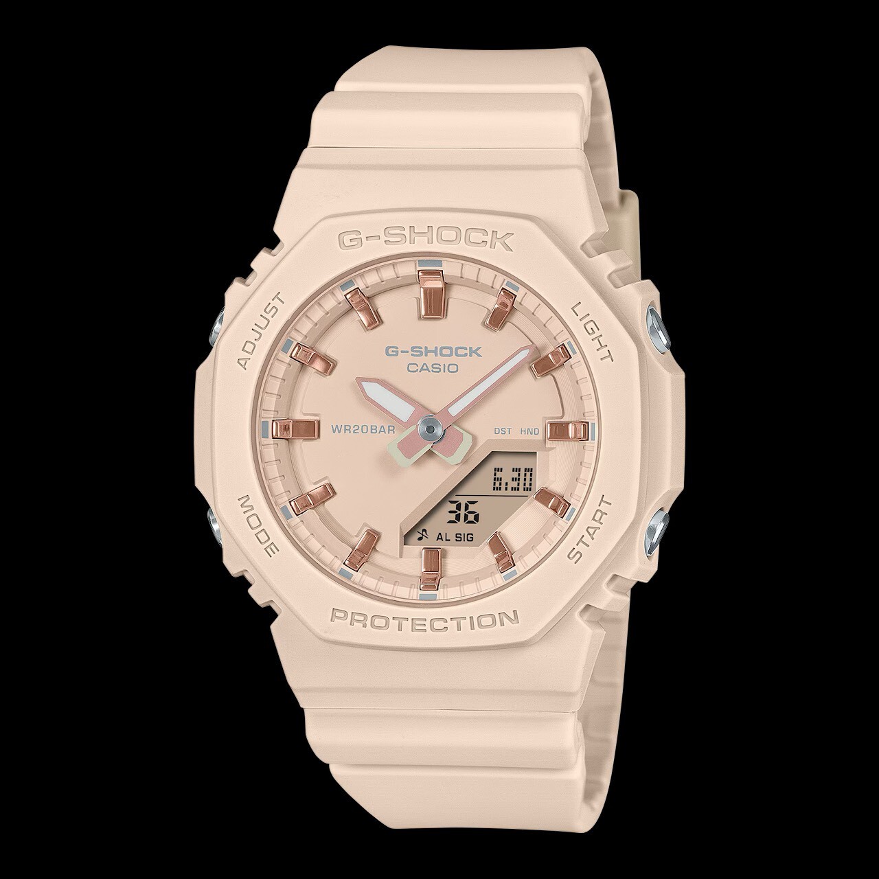 【G-SHOCK】優雅玫瑰金 八角雙顯電子錶GMA-P2100M-4A 40.2mm 現代鐘錶