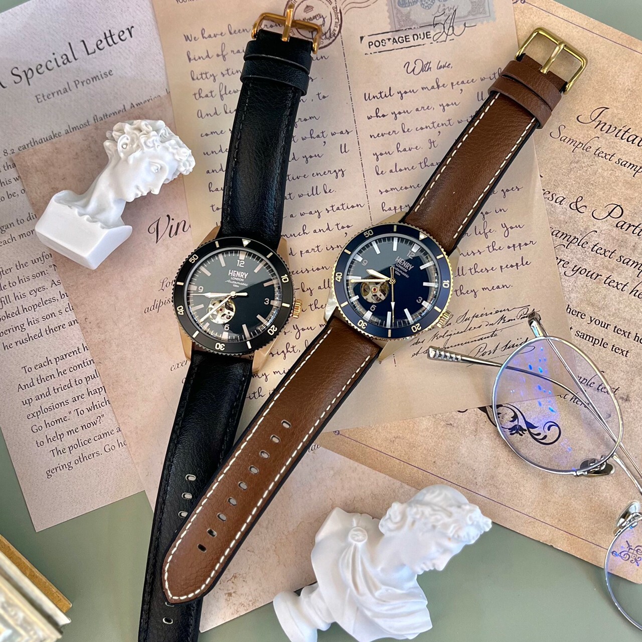 【HENRY LONDON】英倫復古風時尚機械腕錶HL42-AS-0334(藍) / HL-42-AS-0330 (黑) 42mm 現代鐘錶