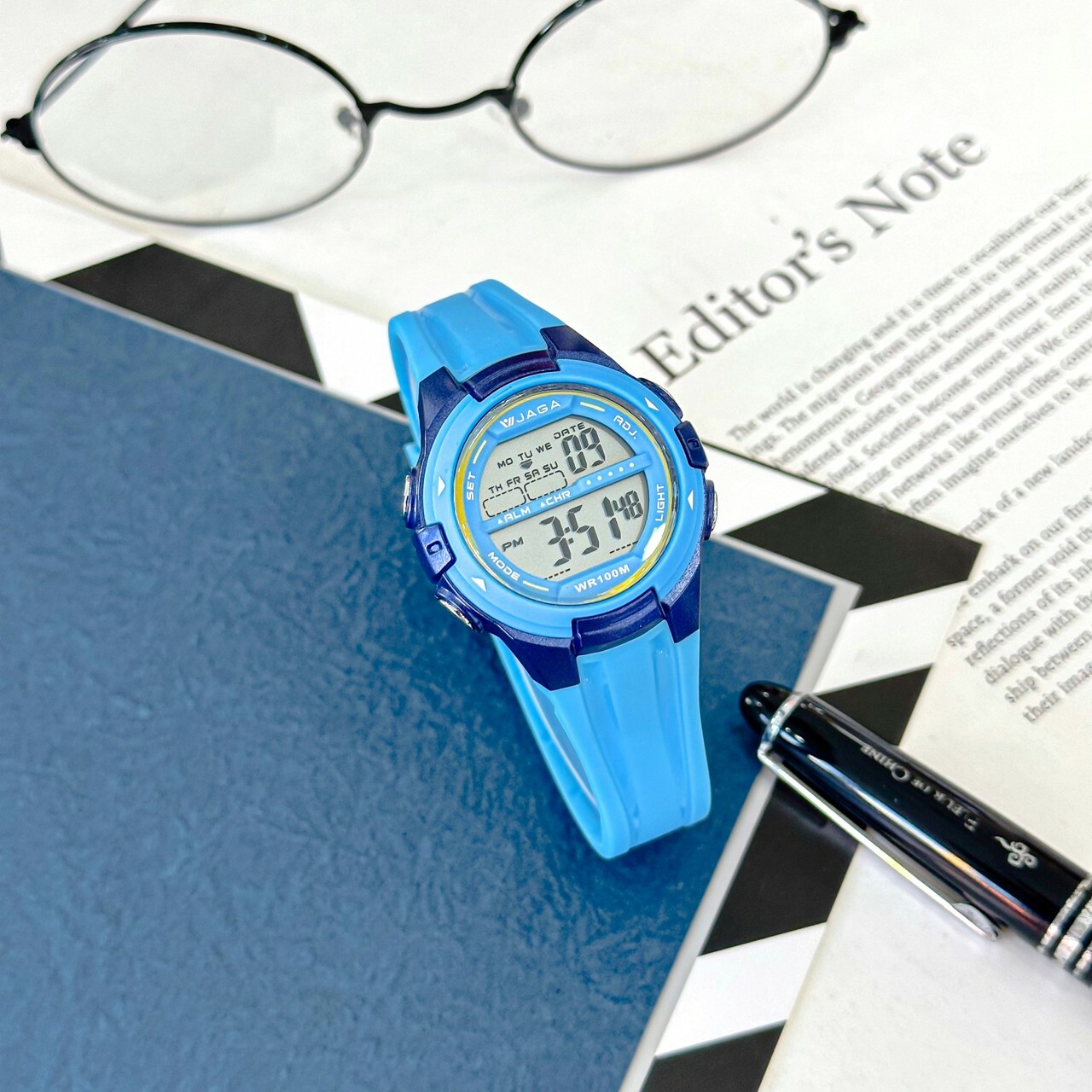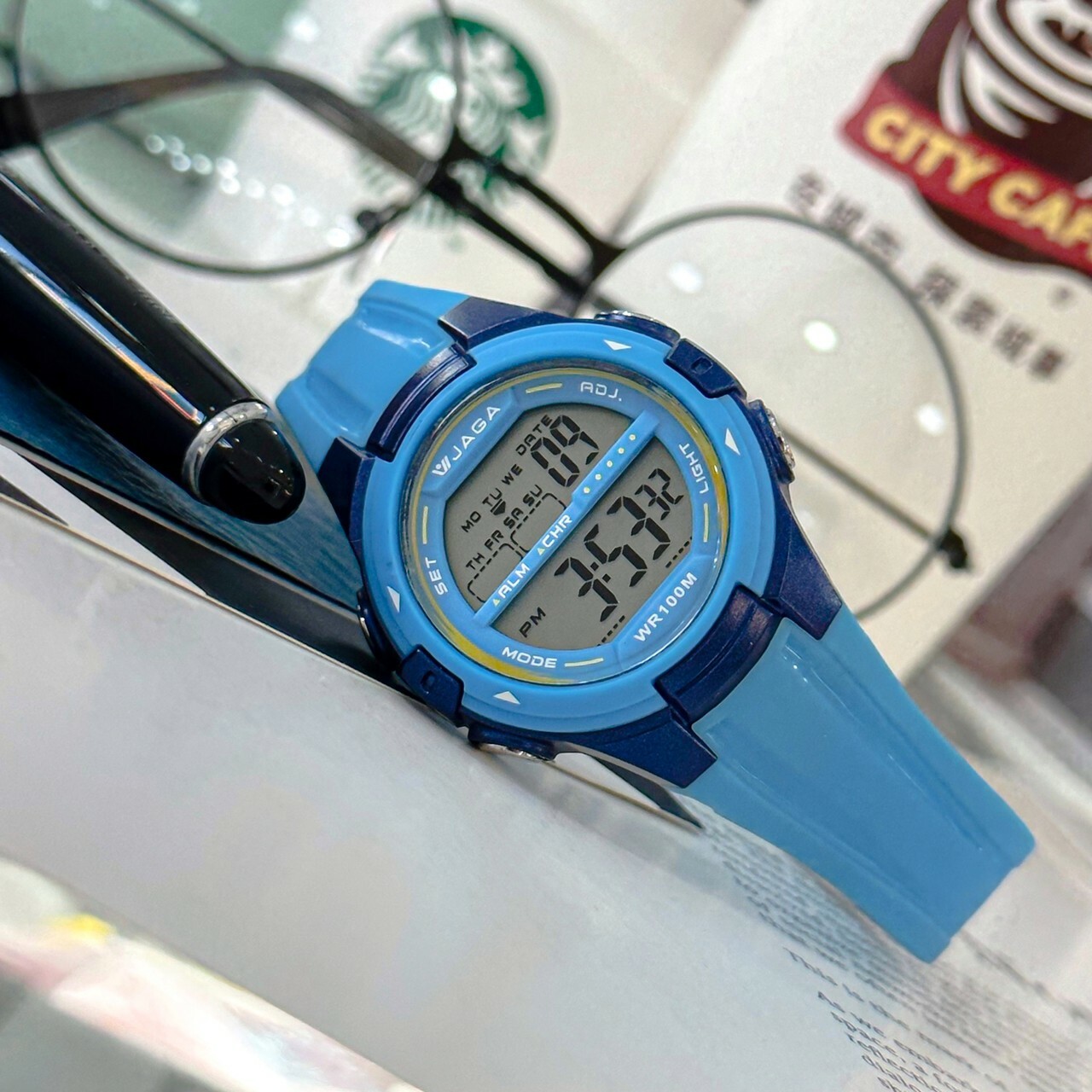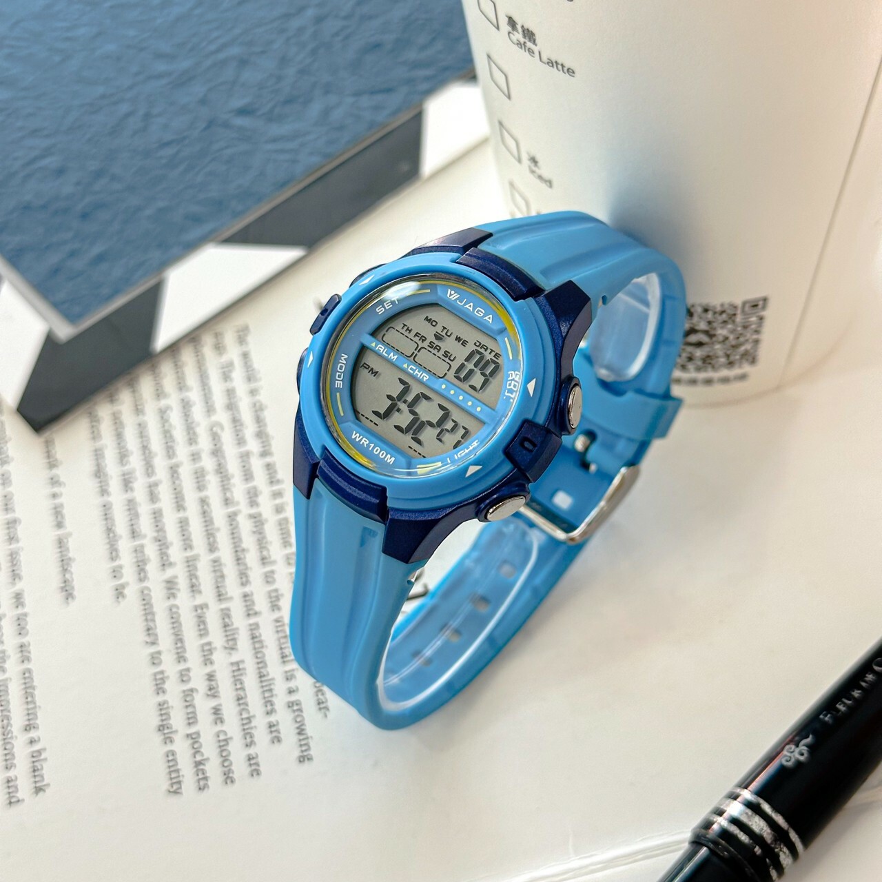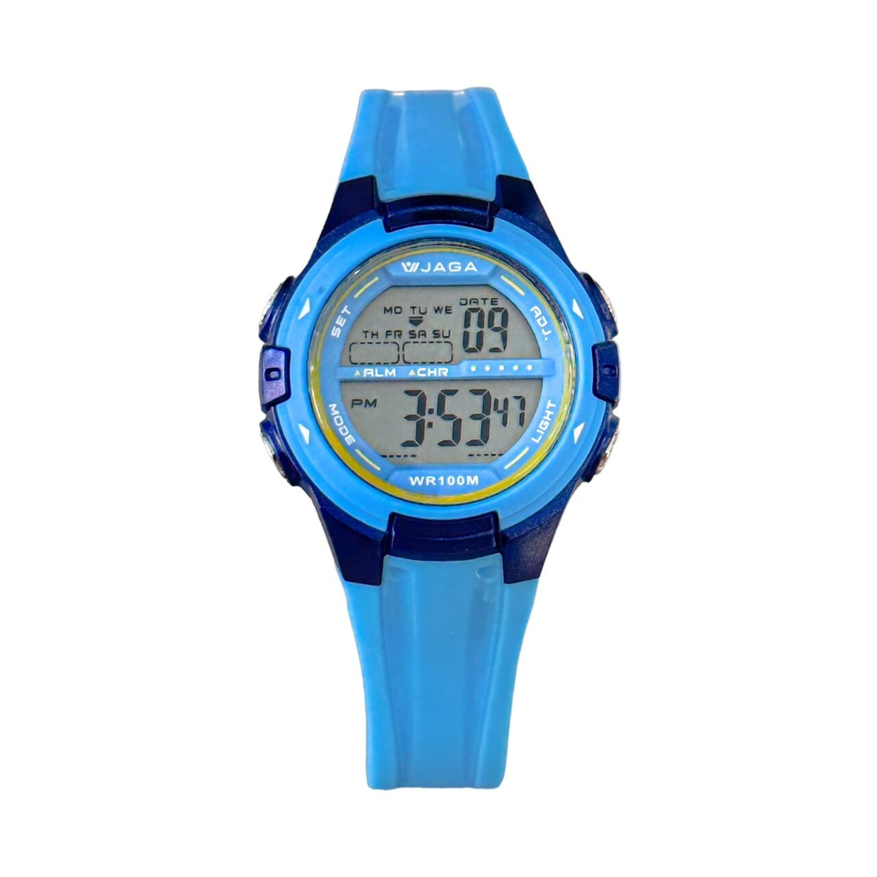 【JAGA 捷卡】活力色系多功能運動電子錶 M-1140-E 36mm 現代鐘錶