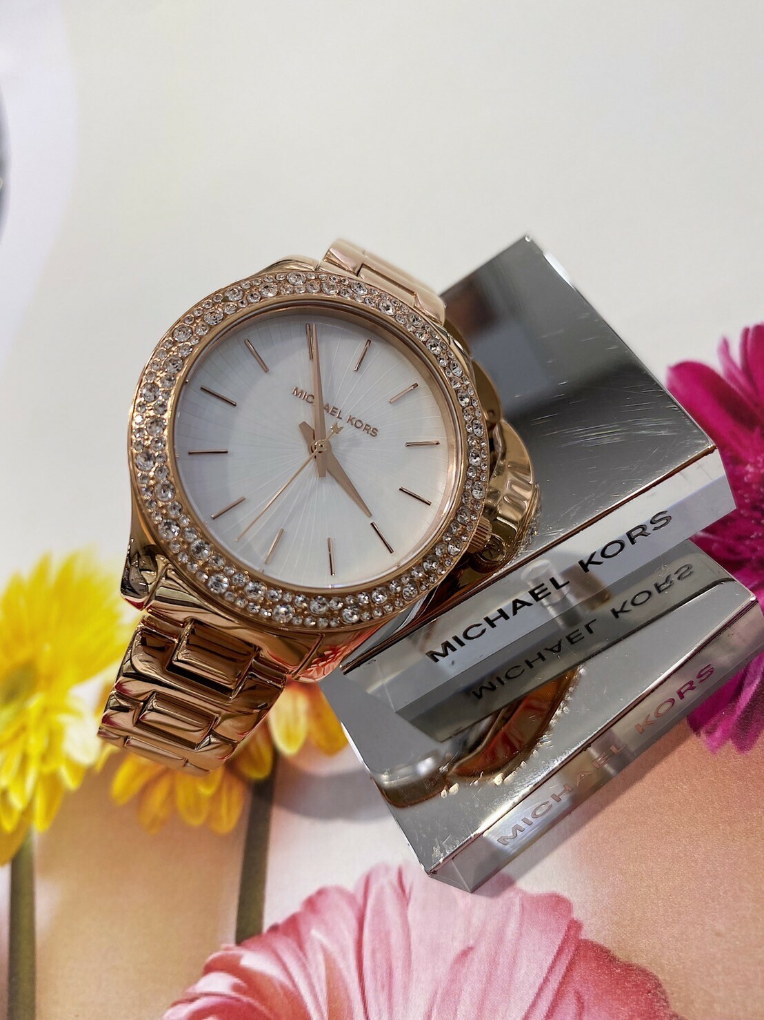 【MICHAEL KORS】優雅滿鑽珍珠母貝腕錶 MK4557 36mm 現代鐘錶