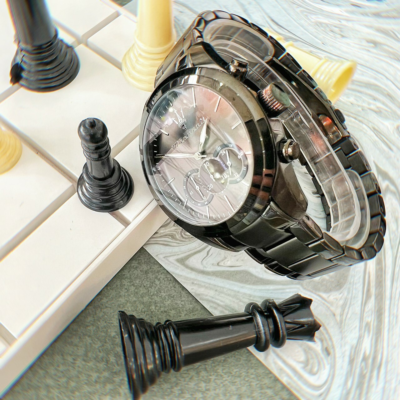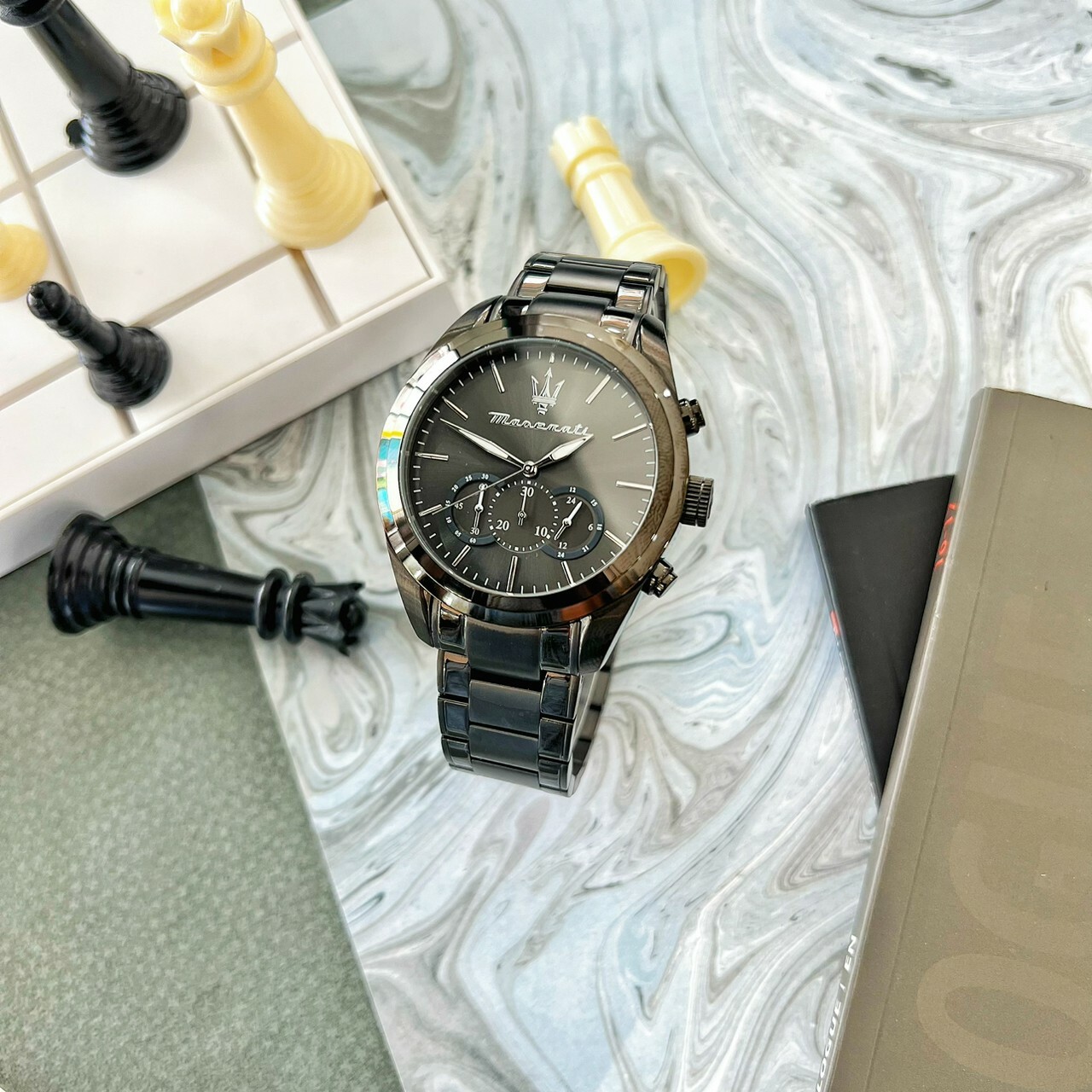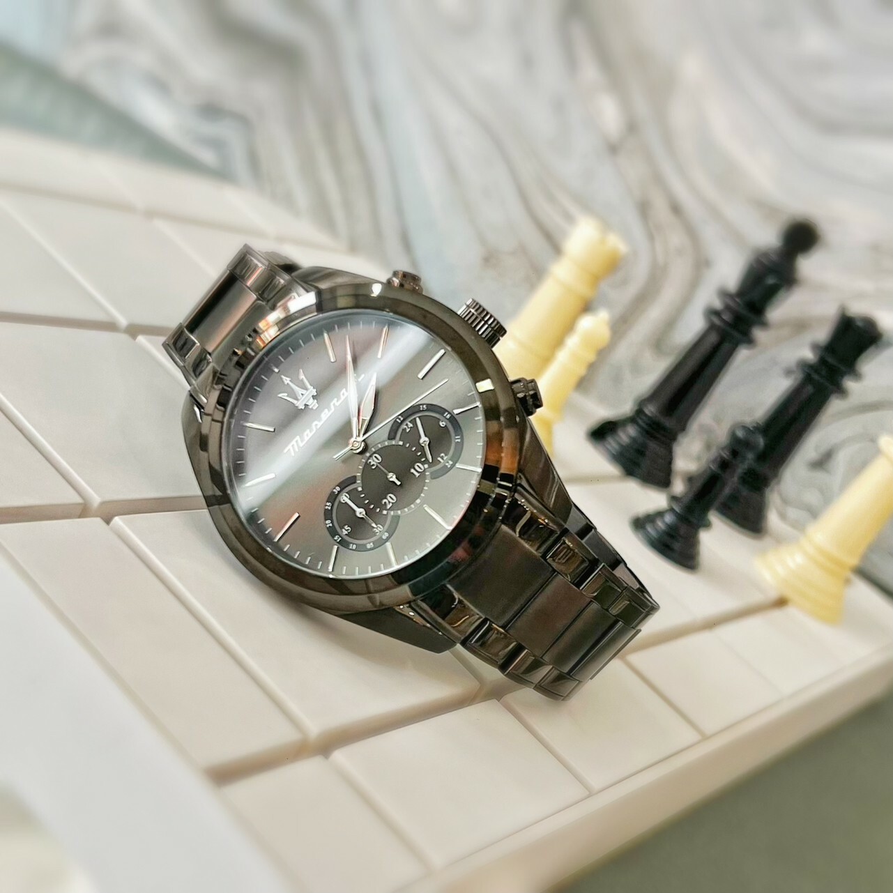 【Maserati瑪莎拉蒂】TRAGUARDO 性格槍黑三眼計時手錶 R8873612002 45mm 現代鐘錶
