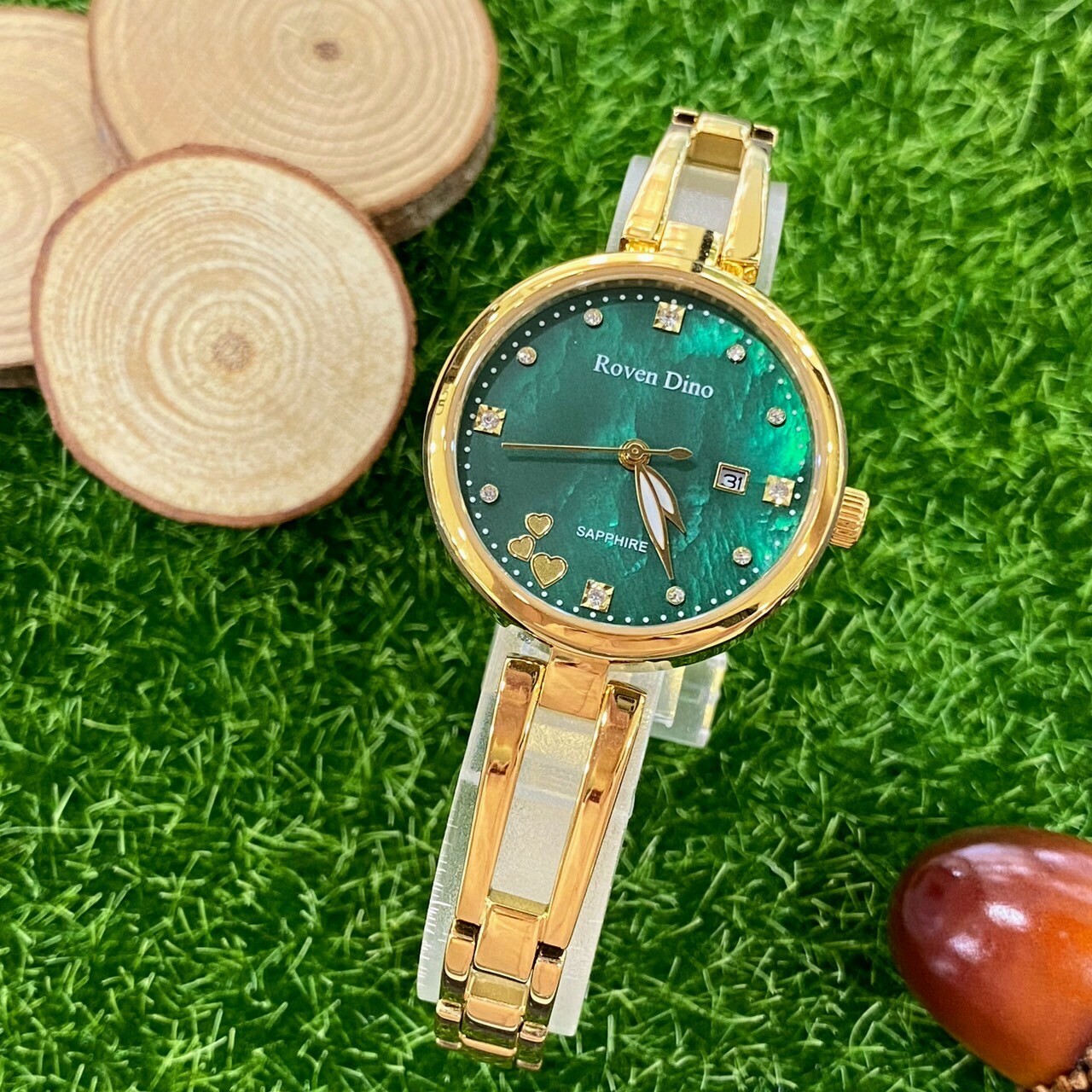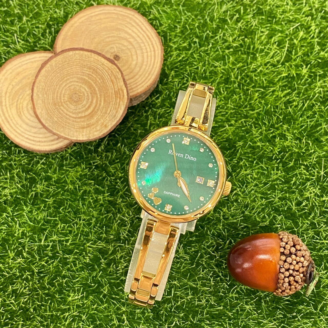 【Roven Dino羅梵迪諾】祖母綠金錶RD799G 27mm 現代鐘錶
