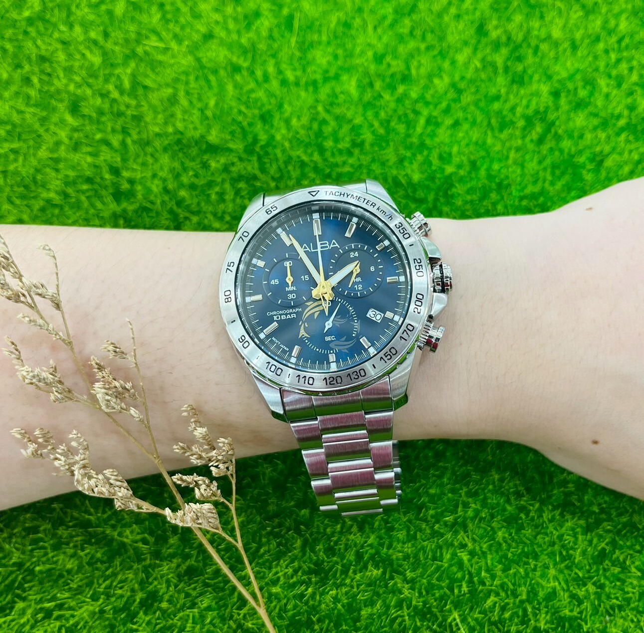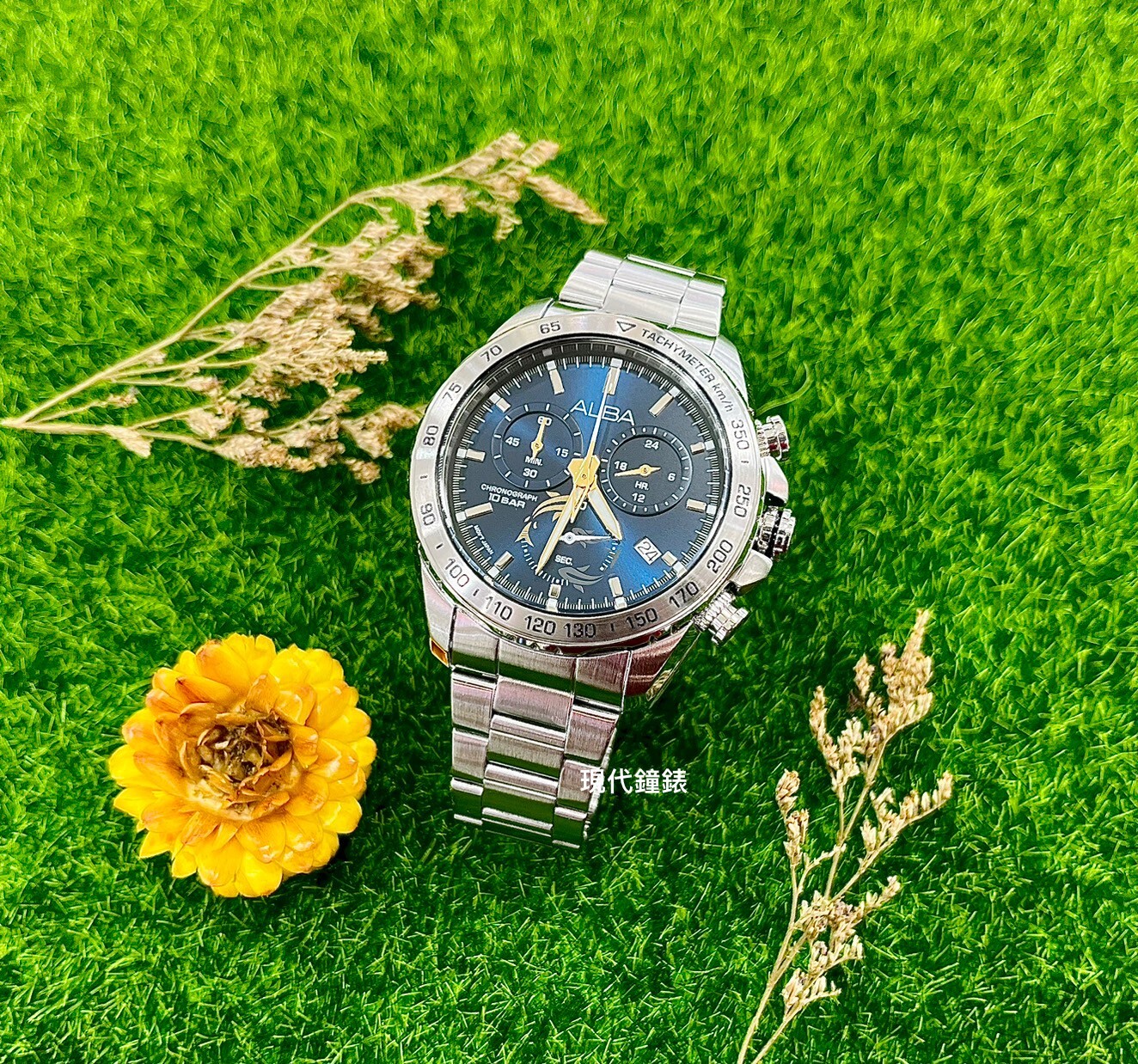 【ALBA 雅柏】白鋼藍面三眼計時錶款VK68-X004B 42mm 現代鐘錶