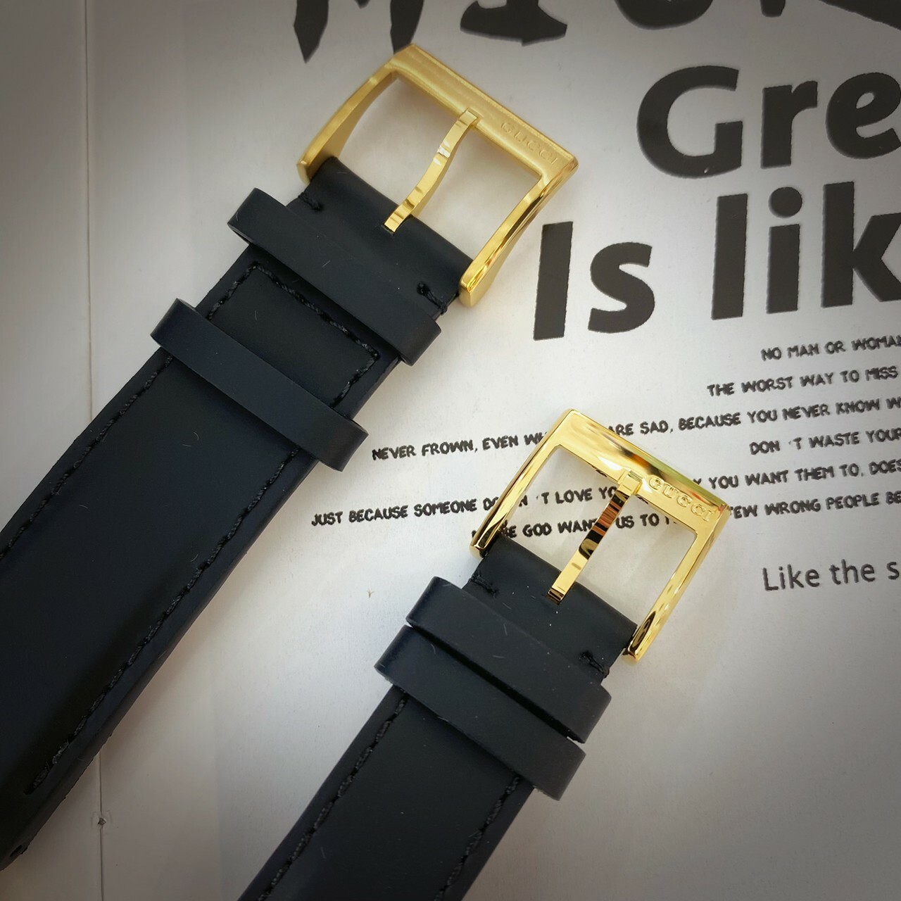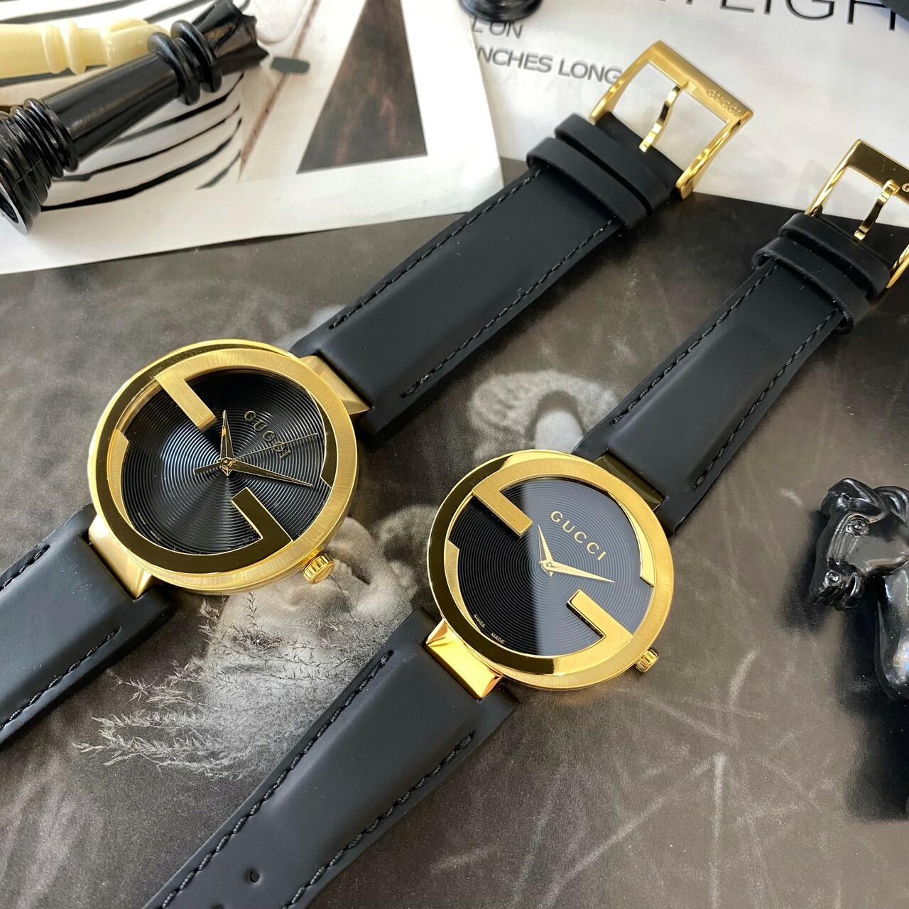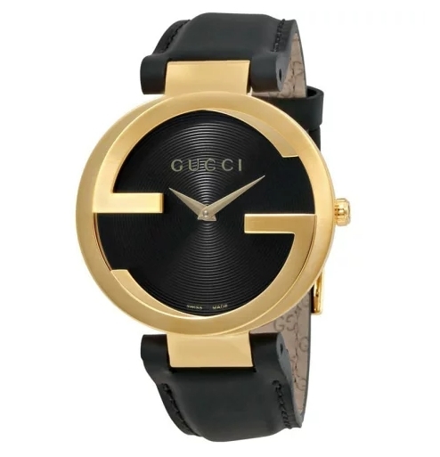 【GUCCI】 經典黑金雙G皮革錶帶 YA133326 (37mm) /YA133212 (42mm)現代鐘錶